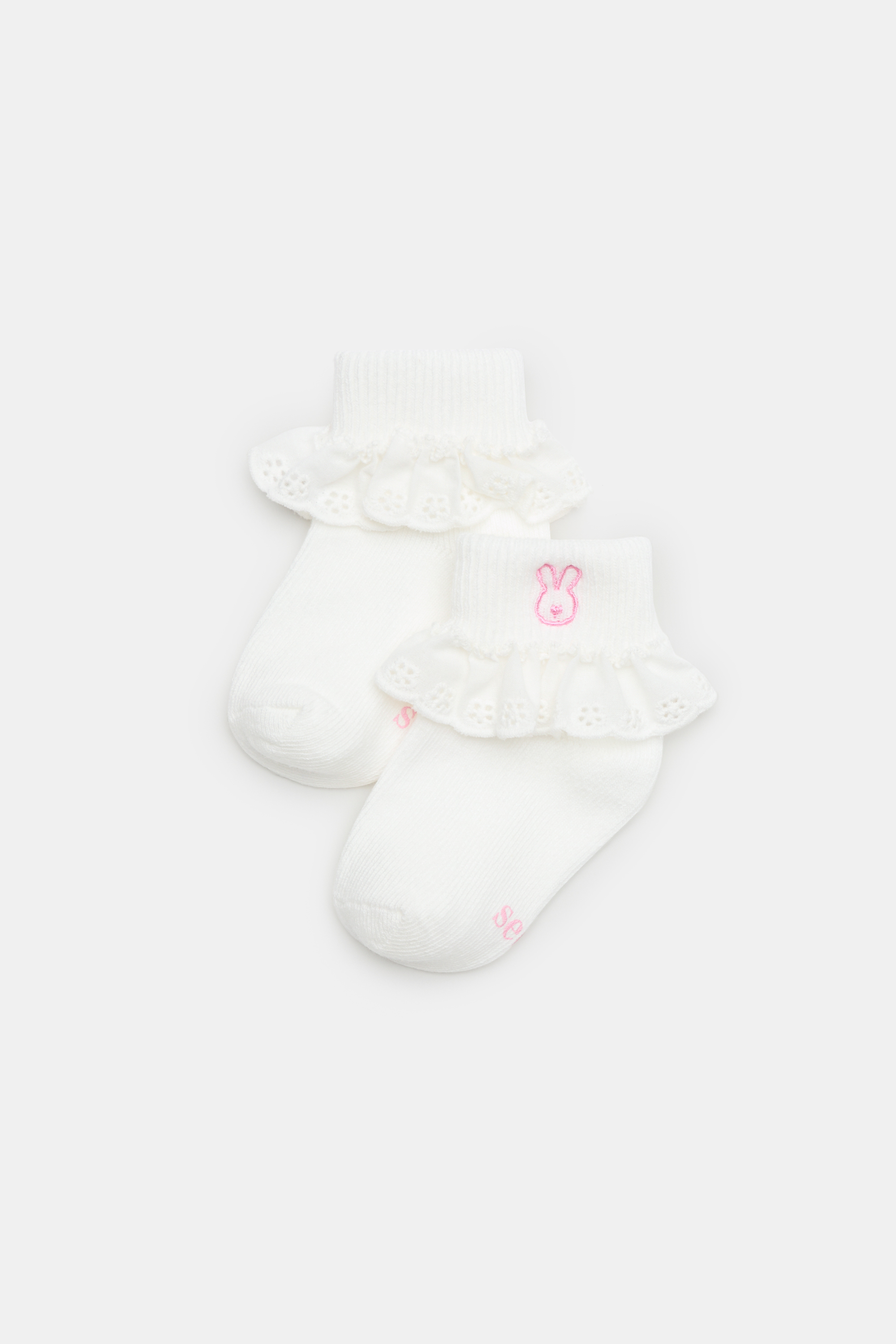 Perfect for tiny toes, these socks feature an embroidered bunny and the cutest little frill.