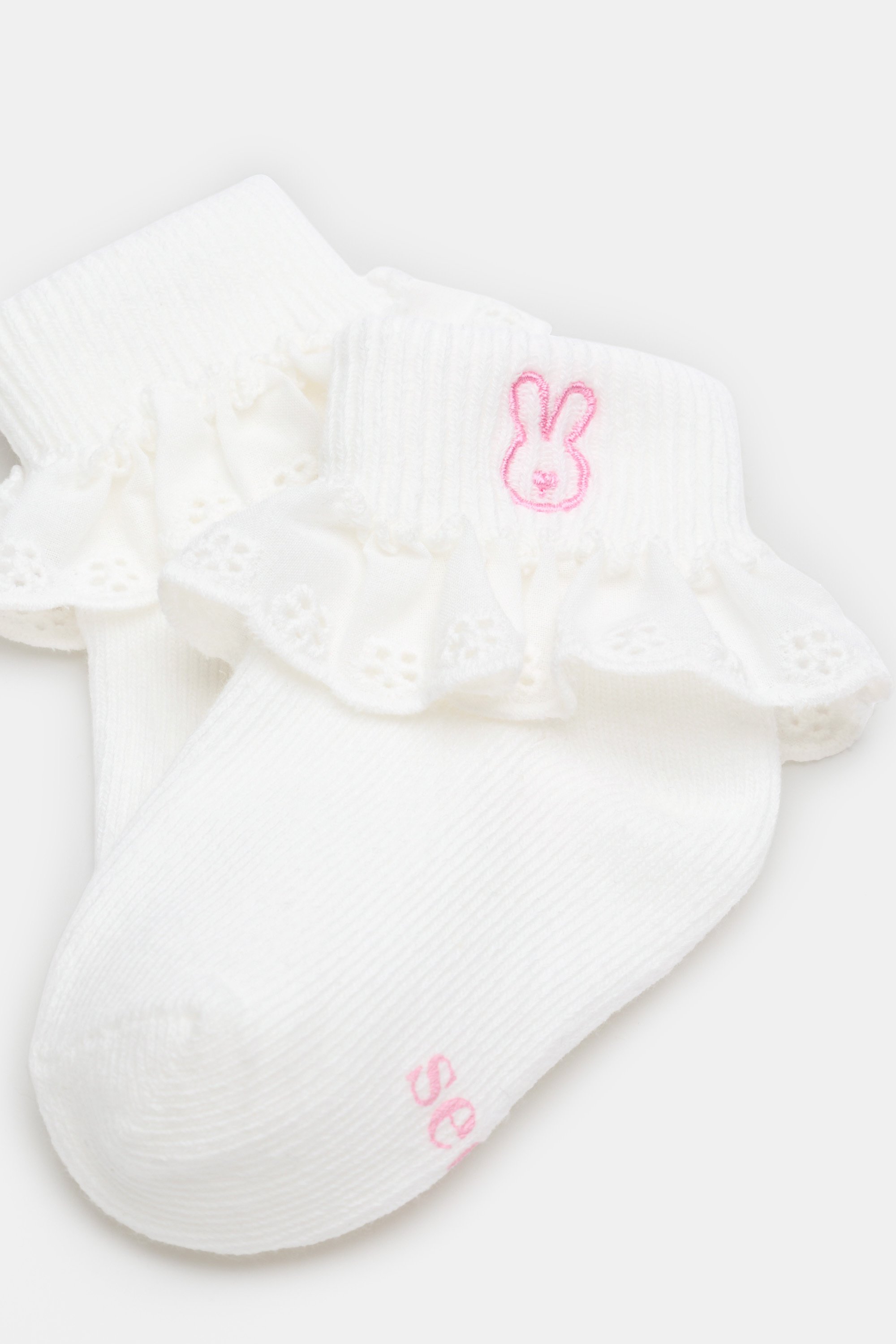 Perfect for tiny toes, these socks feature an embroidered bunny and the cutest little frill.