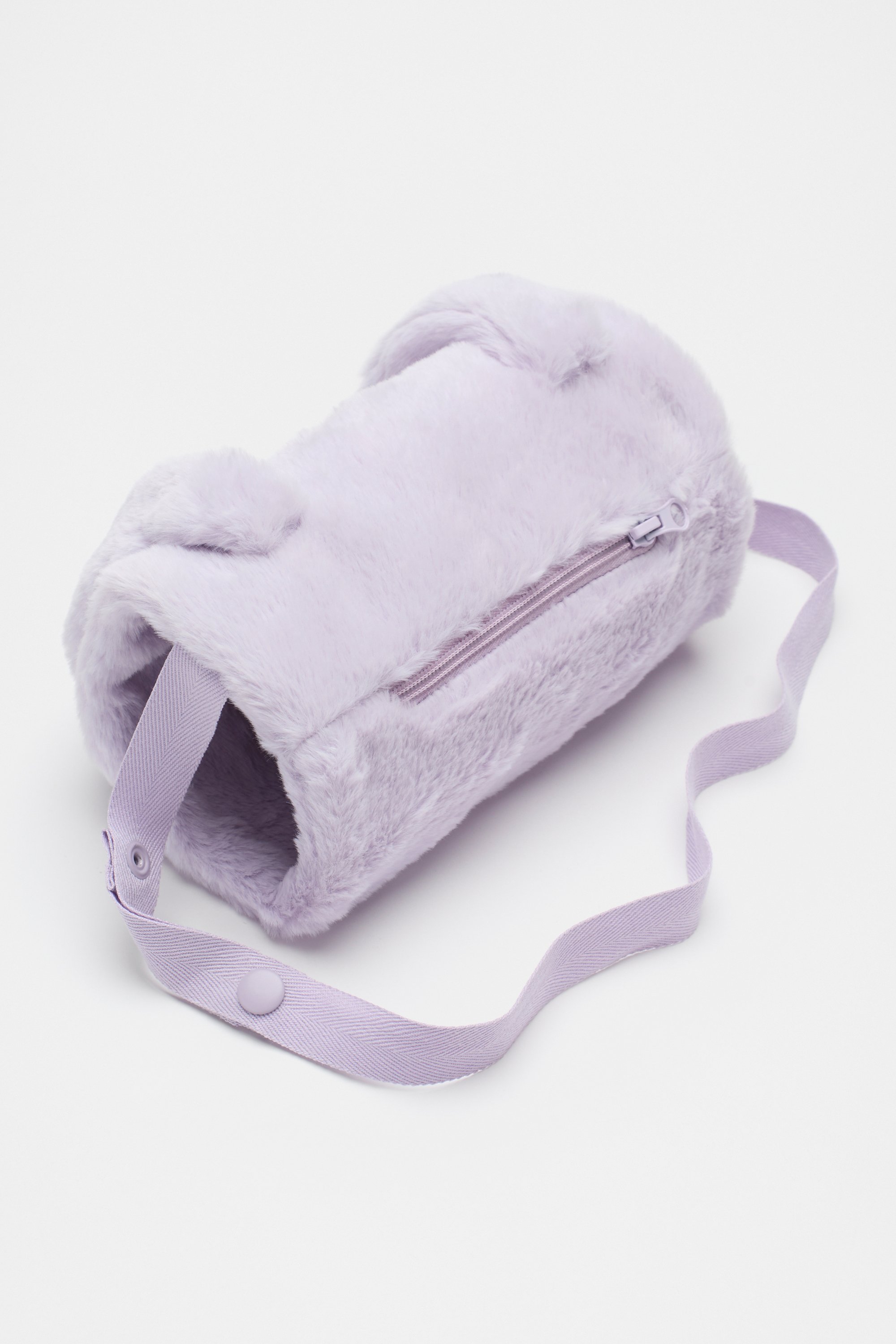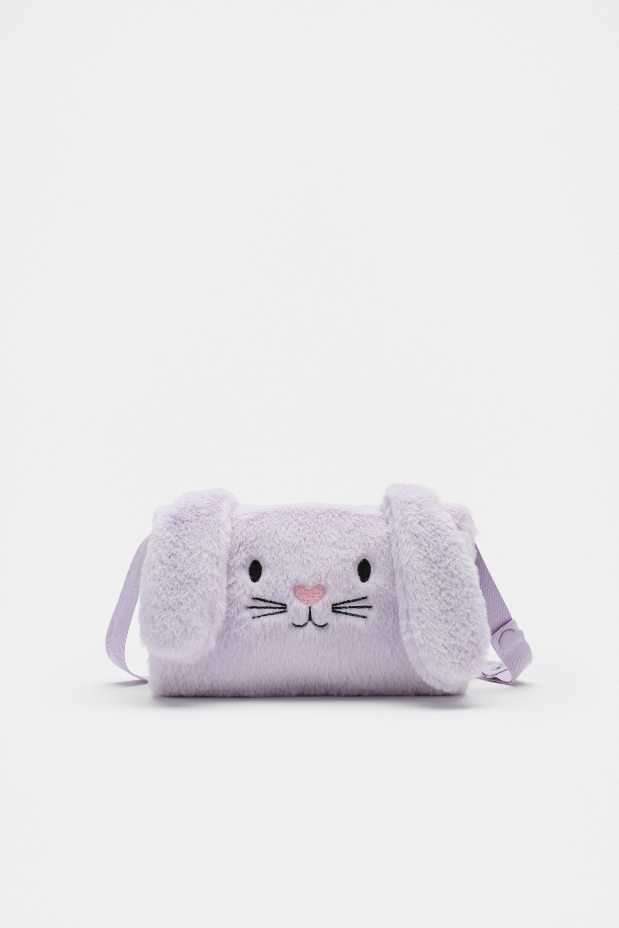 Sweet, fluffy and designed to keep small hands cosy and warm. It features a bunny face and bunny ears, an adjustable strap and a zip pocket.