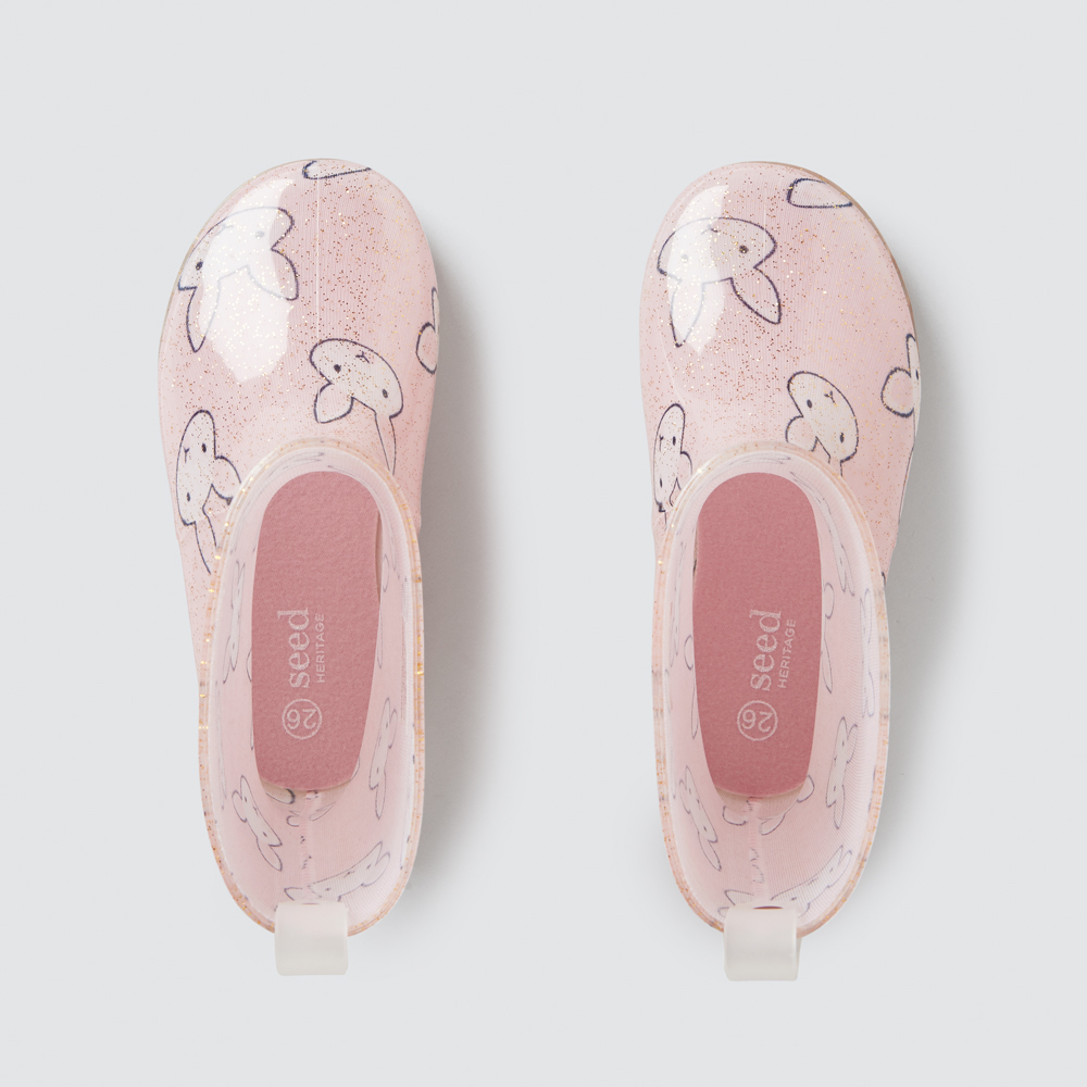 Keep their feet warm and dry with these bunny gumboots. Perfect for jumping in puddles, they light up and flash with every step to bring a touch of fun on chilly days.Available in Pink, this shoe is made from rubber and available in sizes 22 to 33. This boot lasts for one hundred and fifty thousand flashes.