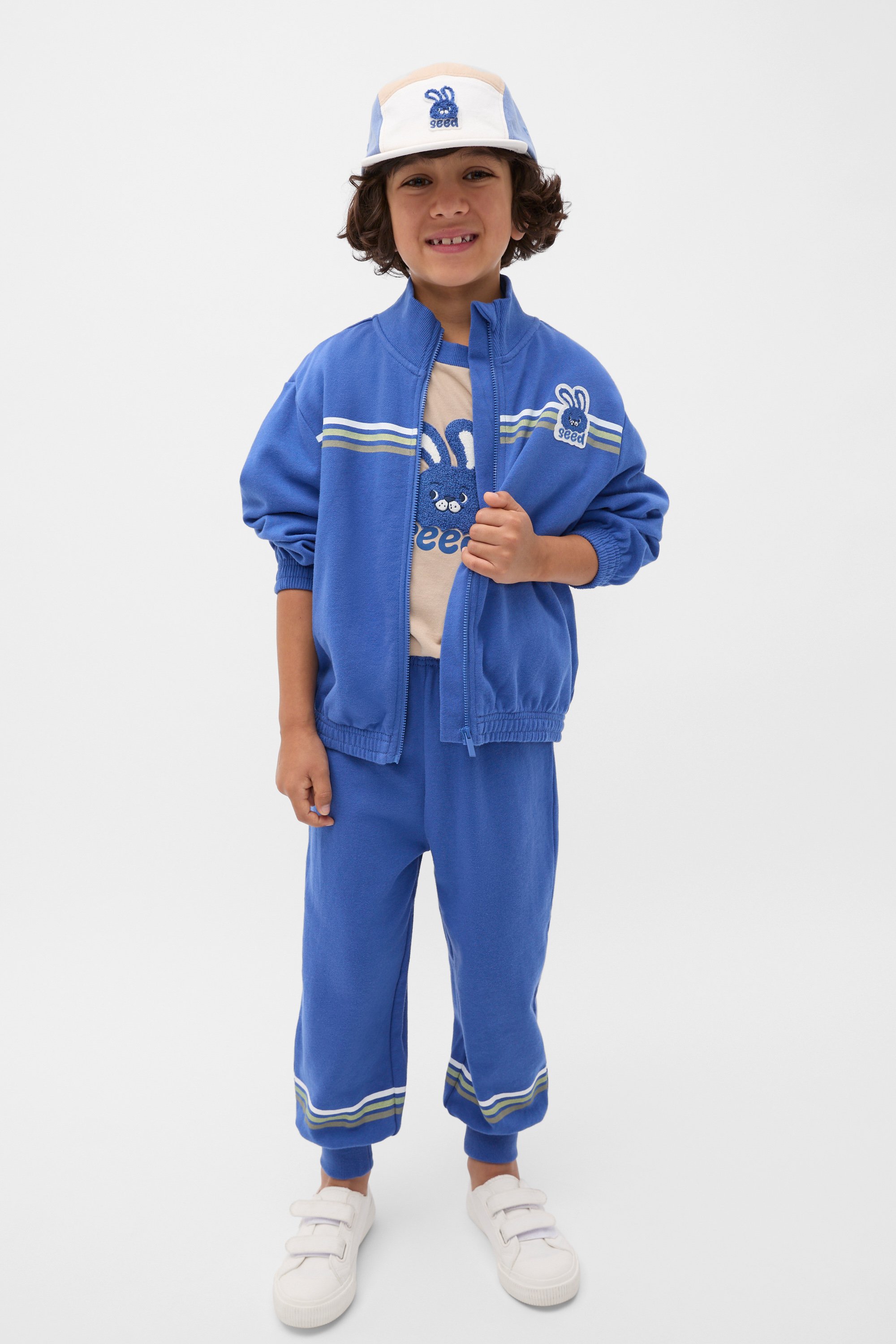 Cosy and sweet with a retro feel, this little sweater is set to be a favourite in their wardrobe. Crafted in premium cotton and designed to pair with the matching tracksuit pants, it features a high collar with a zip-through front and elasticated trims for an ultra-cosy fit. Discover matching bunny styles across our children's apparel and accessories range.