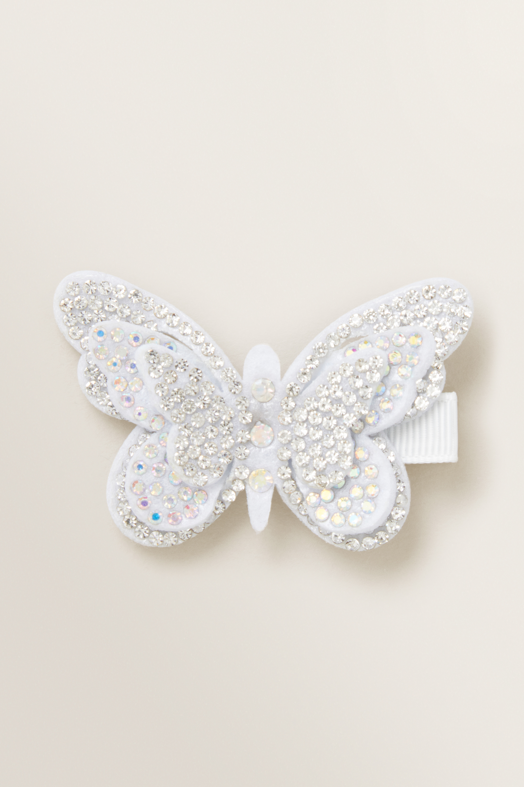Featuring shimmering diamante detailing, this Butterfly Duck Clip features a secure closure.