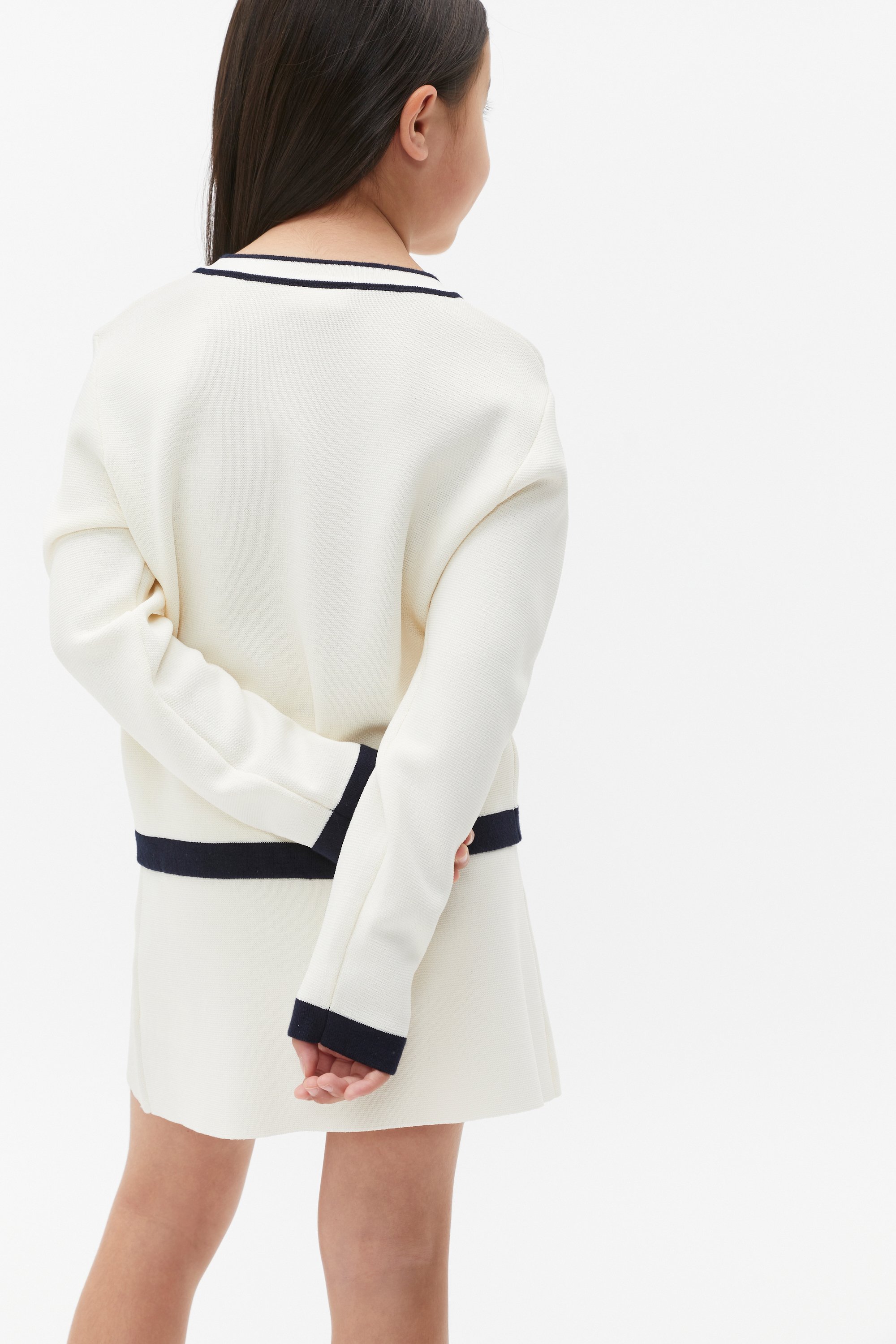 The perfect finishing piece to her party outfit, this cardigan adds a touch of sweet sophistication. It features a round neck, contrast trims and gold buttons. Style with the matching knit styles for a complete head-to-toe look for her next event.