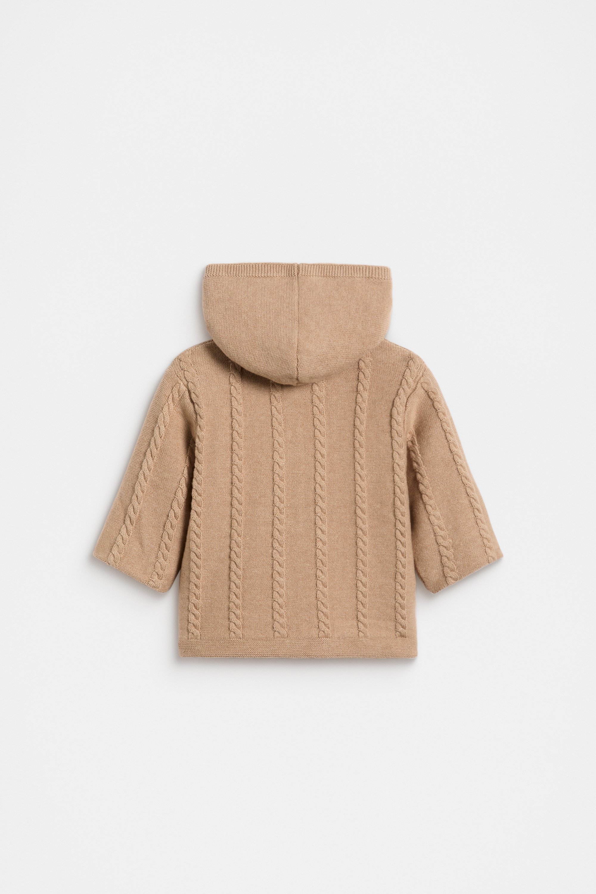 Cuddly and cosy, this jacket is set to become a new favourite for your little love. With an ultra-soft plush lining, it features a hood, long sleeves, a button front, pockets and is finished in a cable knit. This jacket is crafted in a cotton blend, softened with cashmere for a luxury feel. Pair with the matching beanie for the cutest winter set, or for the perfect gift.