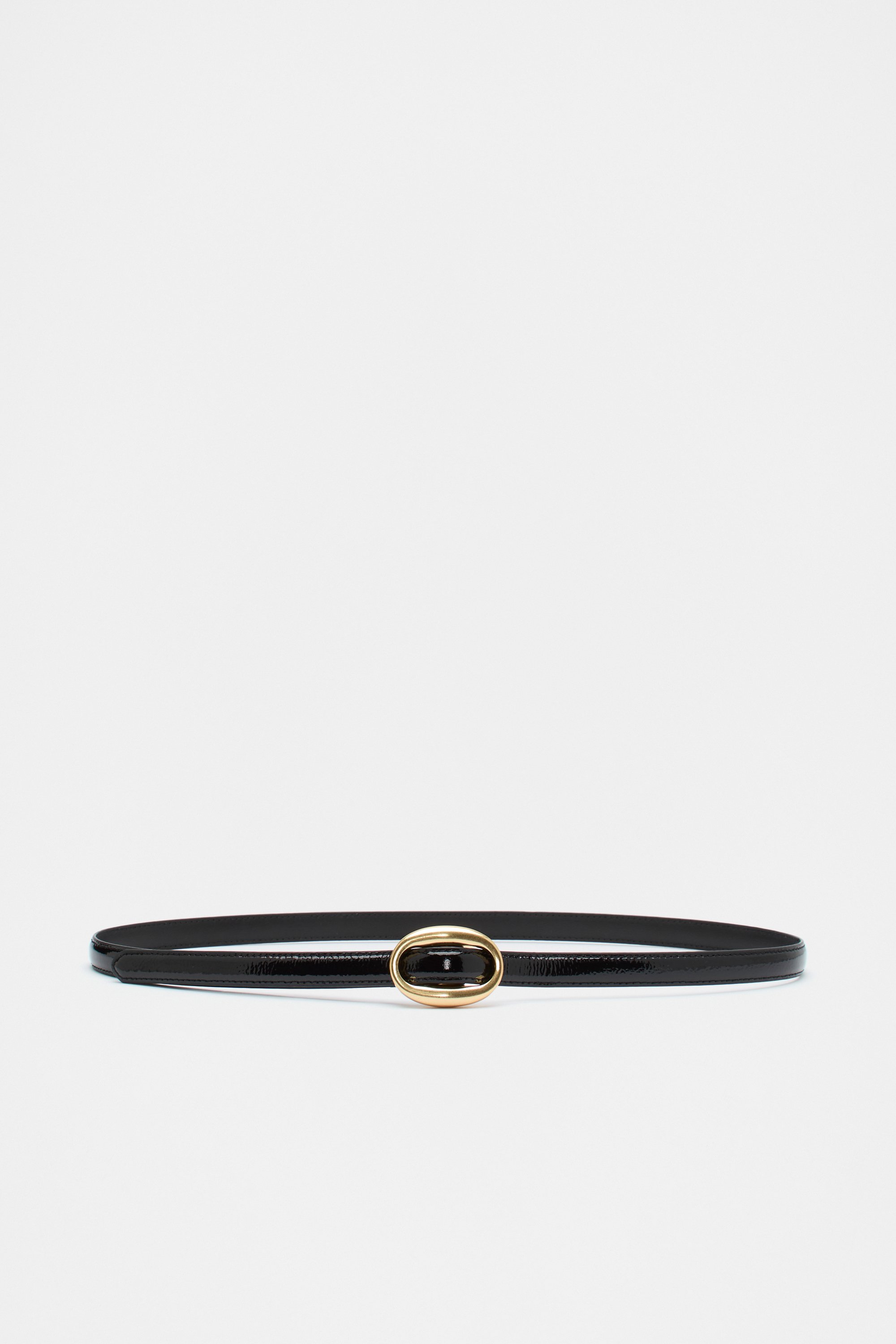 Carmen Oval Buckle Belt  Black Patent  hi-res Carmen Oval Buckle Belt  Black Patent  hi-res