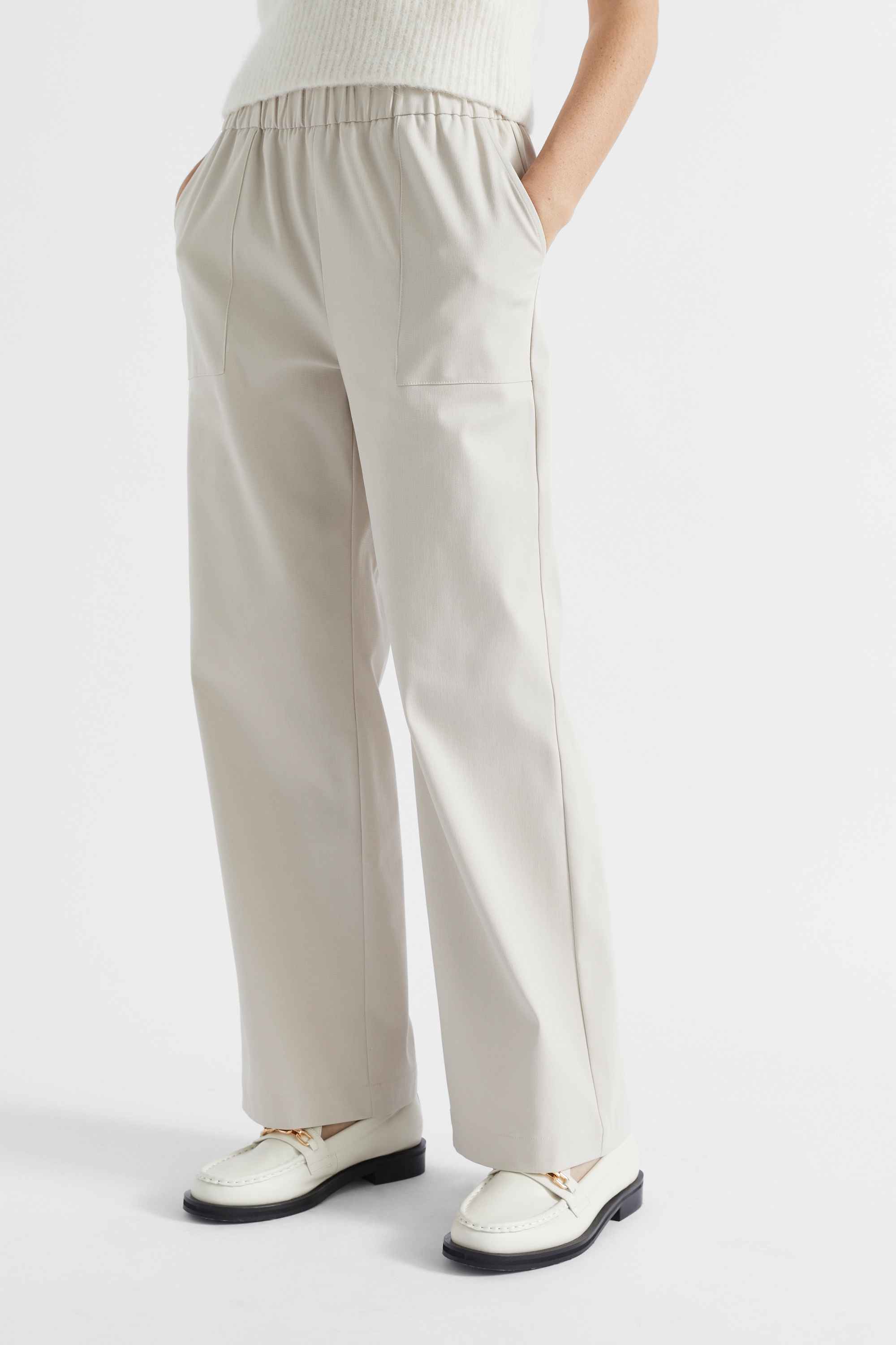 An ideal addition to your casual wardrobe, these are your next go-anywhere pants. They feature a comfortable elasticated waistband, angled patch pockets at the front, and a straight leg shape. Crafted from a stretch cotton blend.