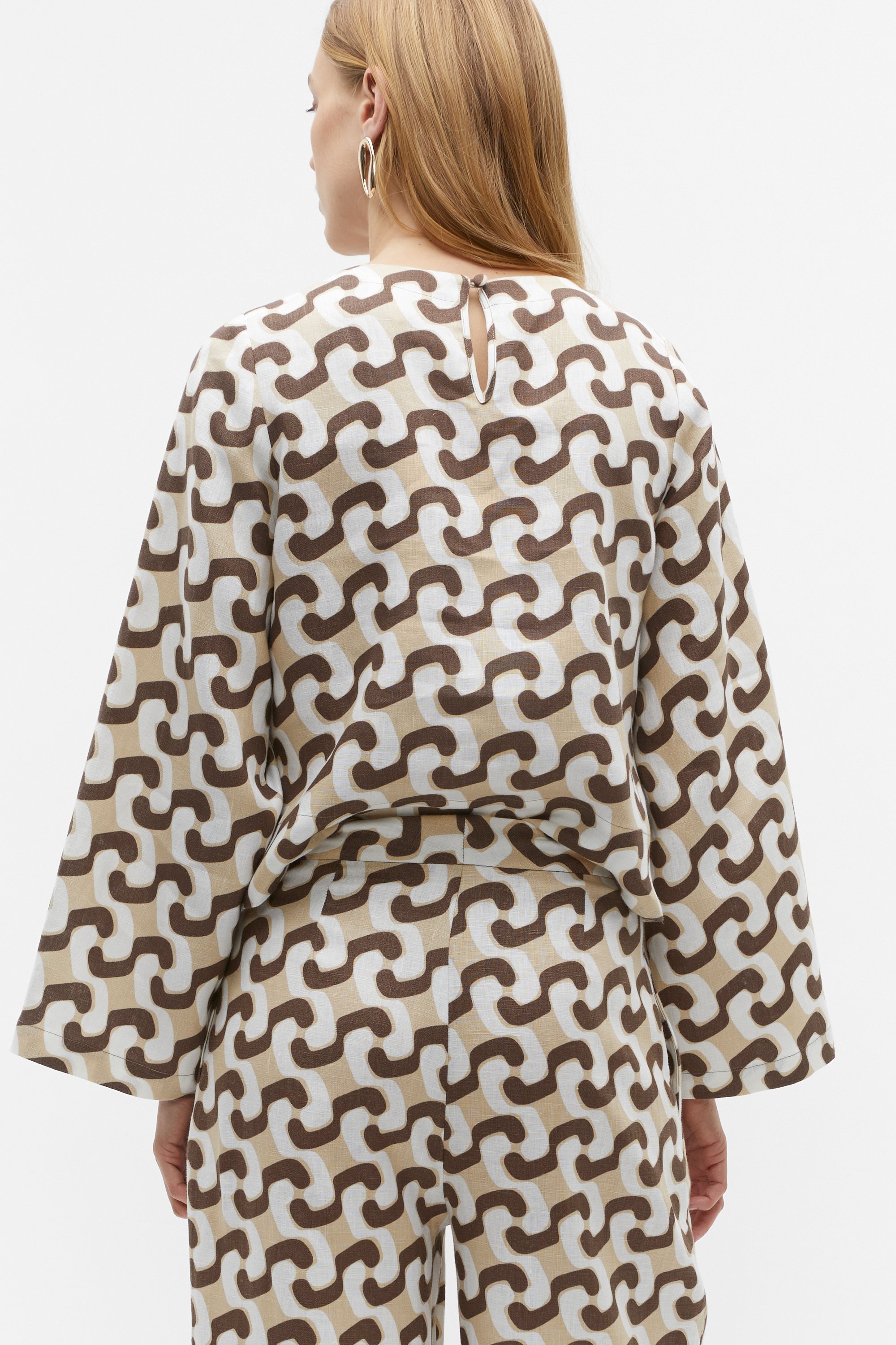In breathable linen crafted with French flax, these pants make a tonal statement. Featuring a retro chain pattern, they also have a fixed waistband with a double tab and zip fly closure, side seam pockets, and a wide leg shape.