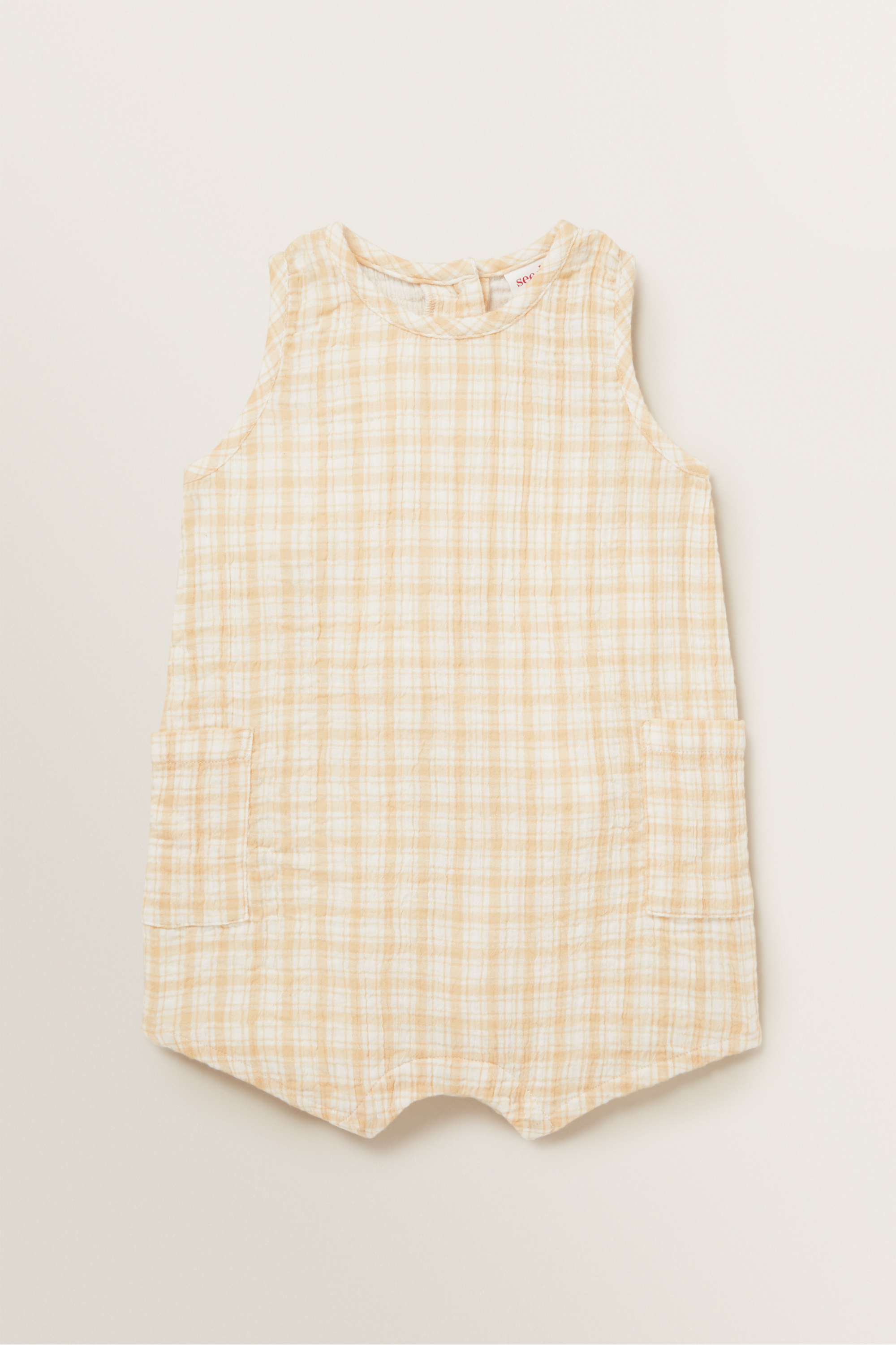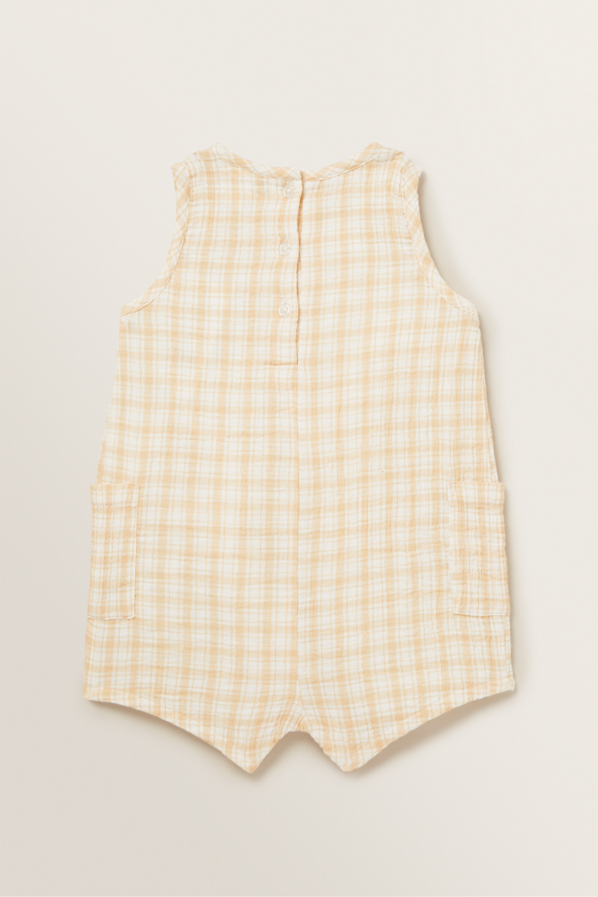 Designed from a 100% cotton fabric, this Check Button Onesie is detailed with a crew neckline, cut-off sleeves and button closure at the centre back.