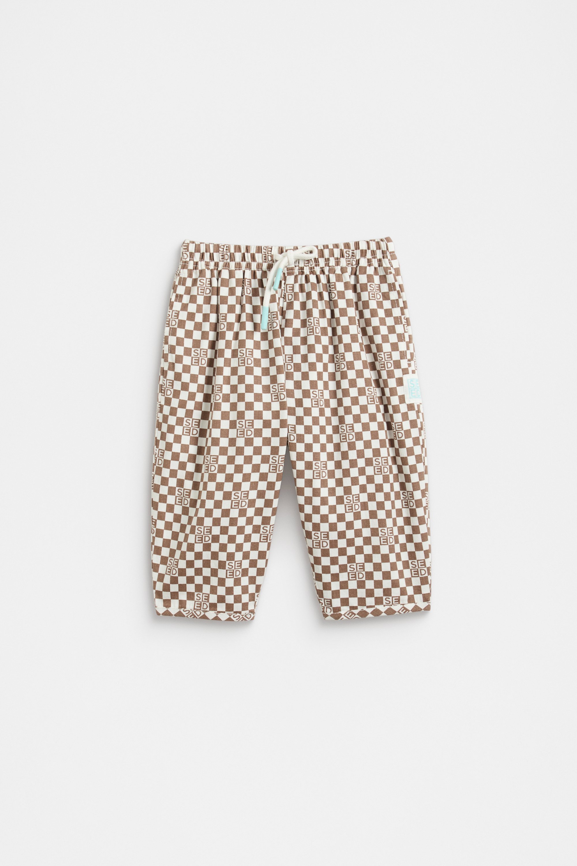 Finished in the most adorable chocolate check, these pants are an easy style to add to their day-to-day dressing. Crafted in premium cotton, they feature an elasticated waistband with a drawstring, pockets and a straight leg shape. Pair with the matching check styles for too-cute coordination.