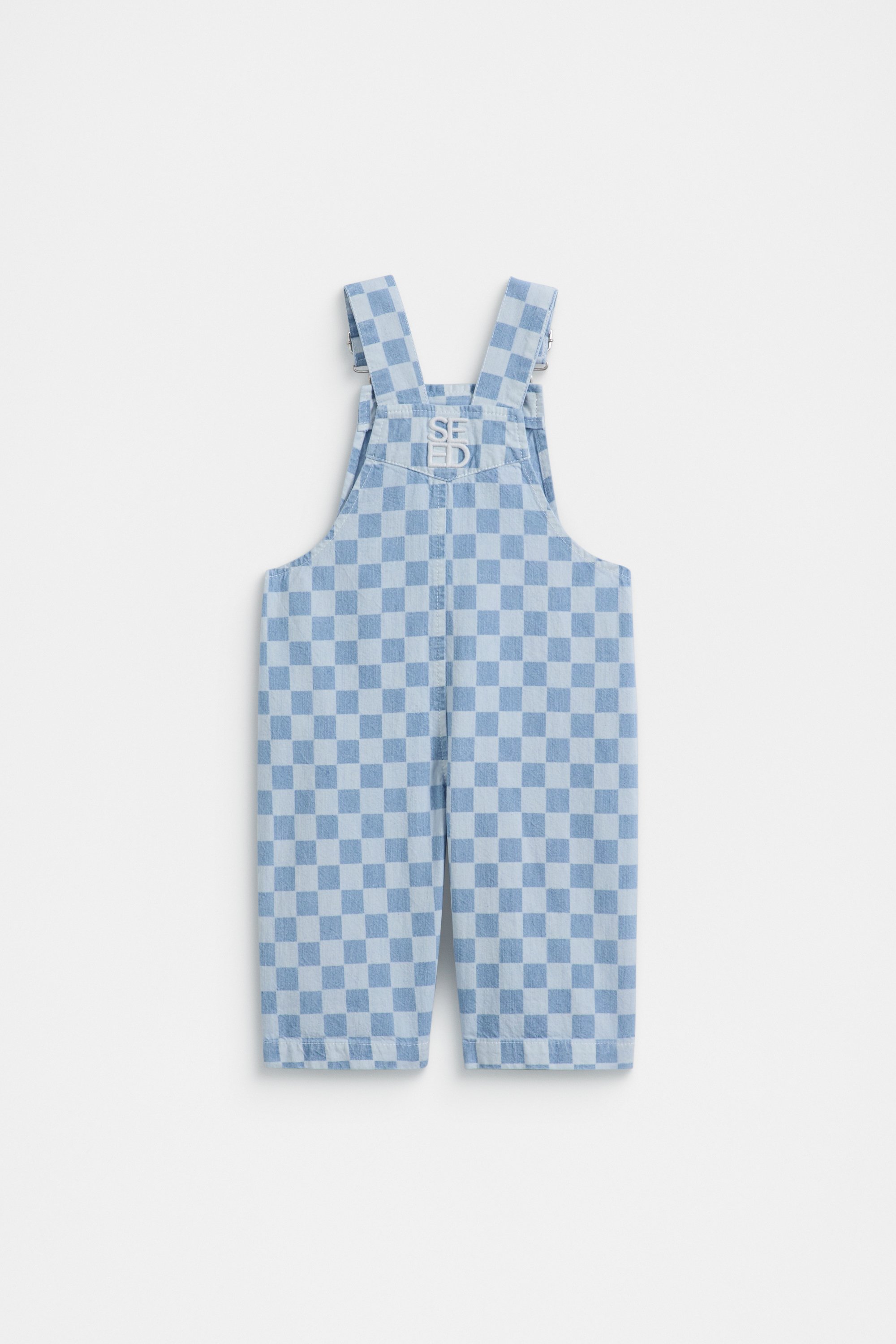A fun layer for his little wardrobe, these overalls feature an all-over checkered pattern. They also have adjustable straps with bib fastenings, a front patch pocket, and snaps at the hips. Crafted from a classic non-stretch denim.