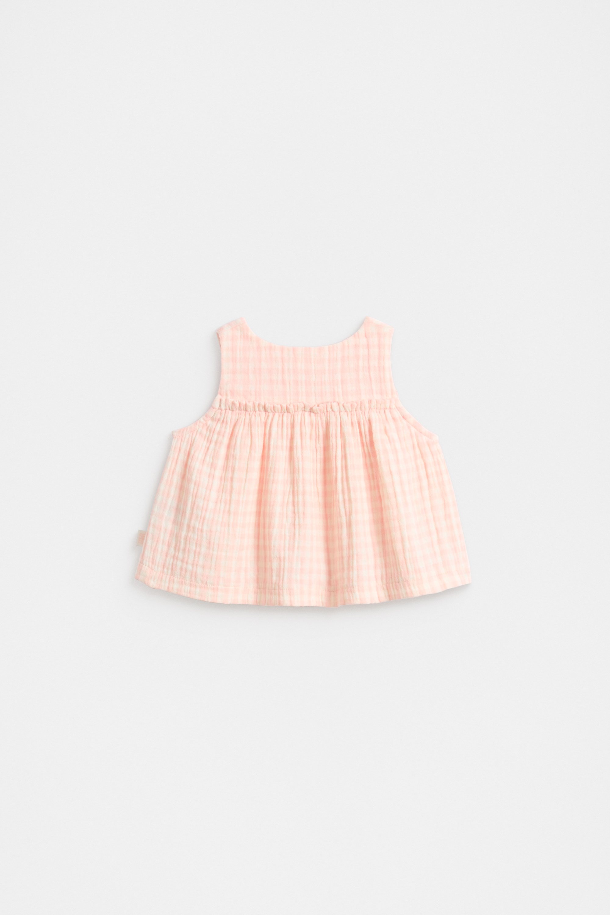 Crafted in a lightweight cotton cheesecloth, this button-up top features the sweetest design. It has a sleeveless smock shape, a round neck and is finished in a gorgeous pink gingham. Pair with the matching bloomers for an adorable head-to-toe look, or for the perfect gift.