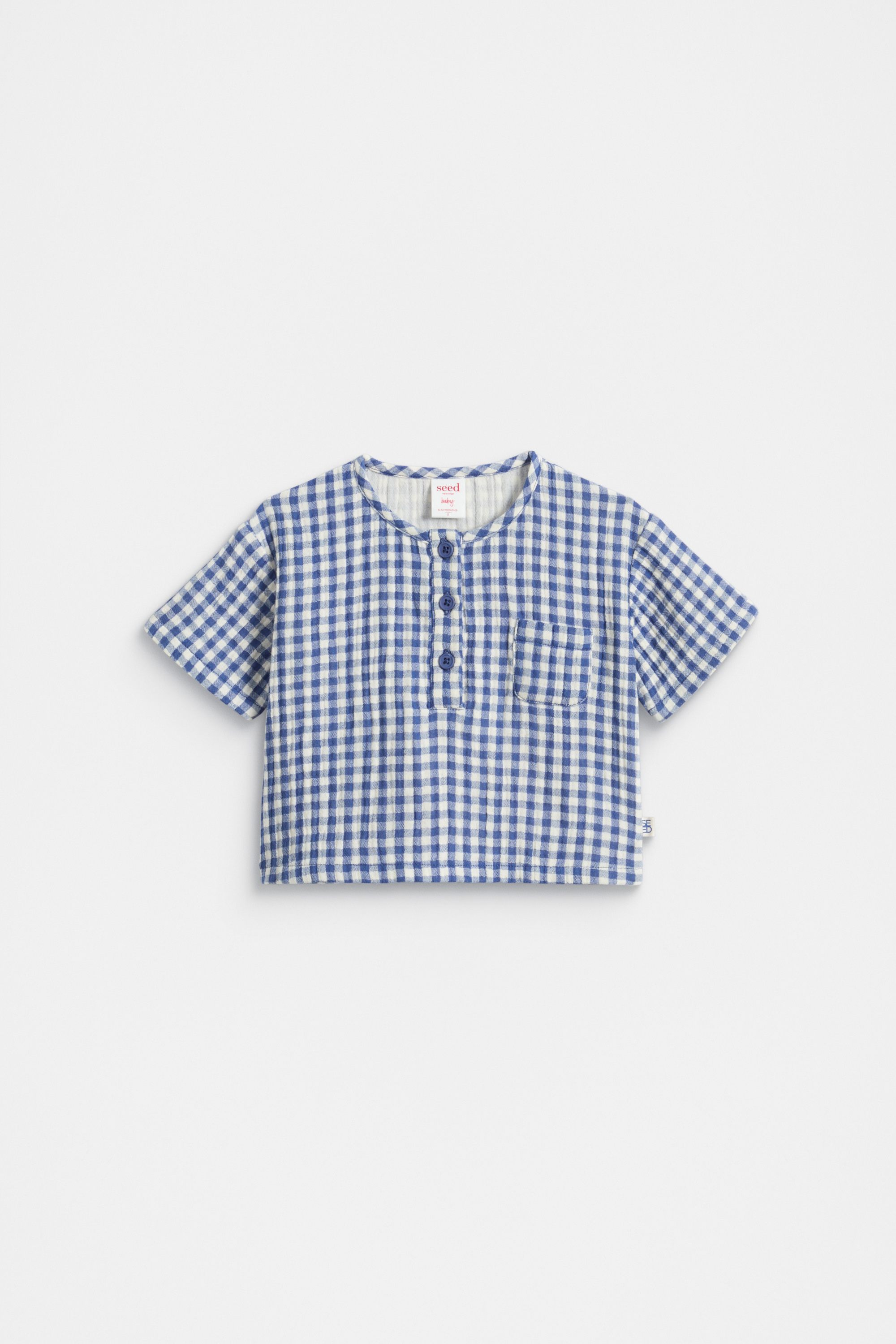 Comfortably lightweight, this cheesecloth shirt is the cutest design. It's crafted in premium cotton and features a round neck with a button up detail, short sleeves and a front pocket. Pair with the matching bloomers for an adorable head-to-toe look, or for the perfect gift.