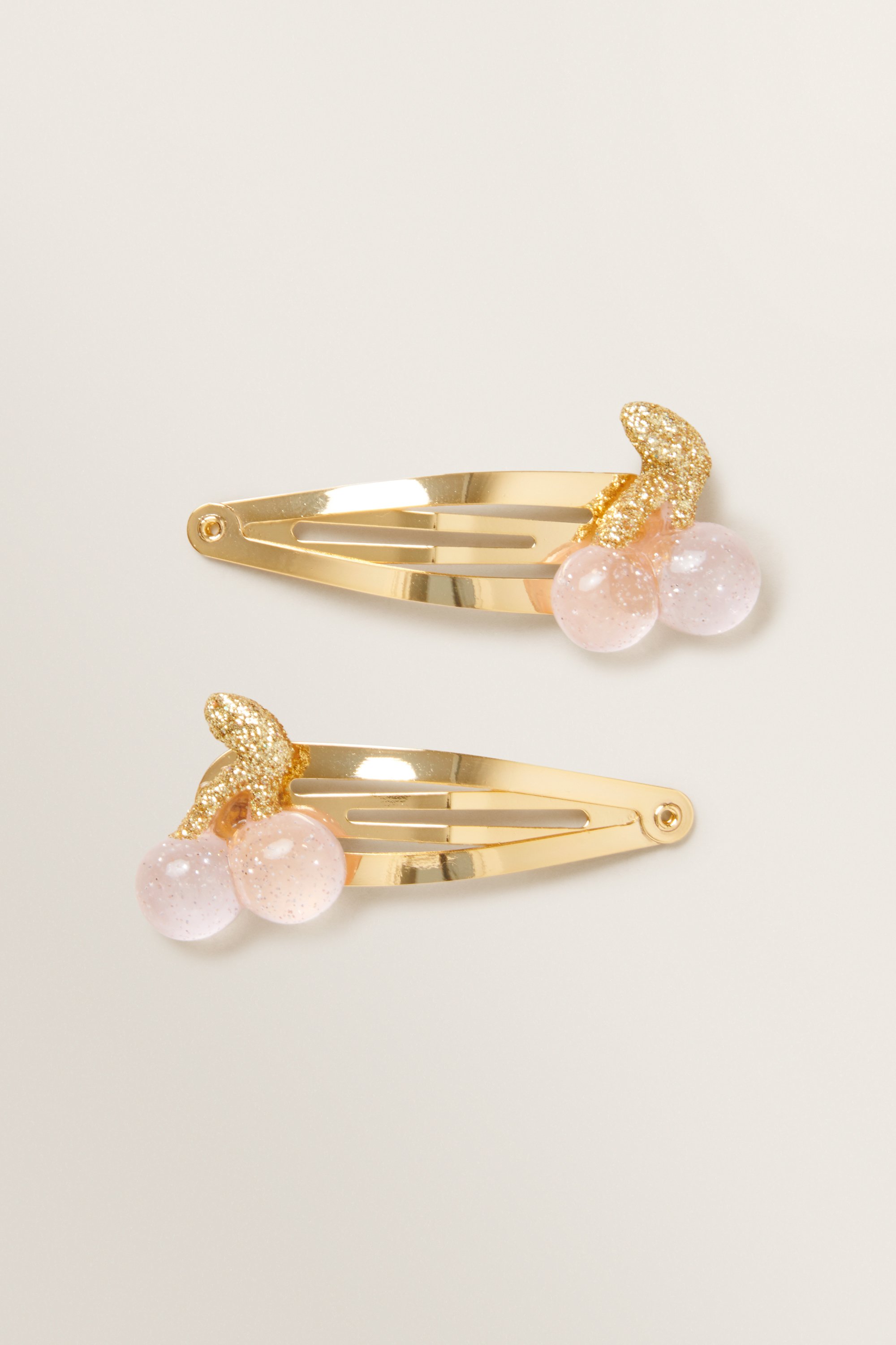 These Cherry Snaps feature glittery motifs and secure snap closures.