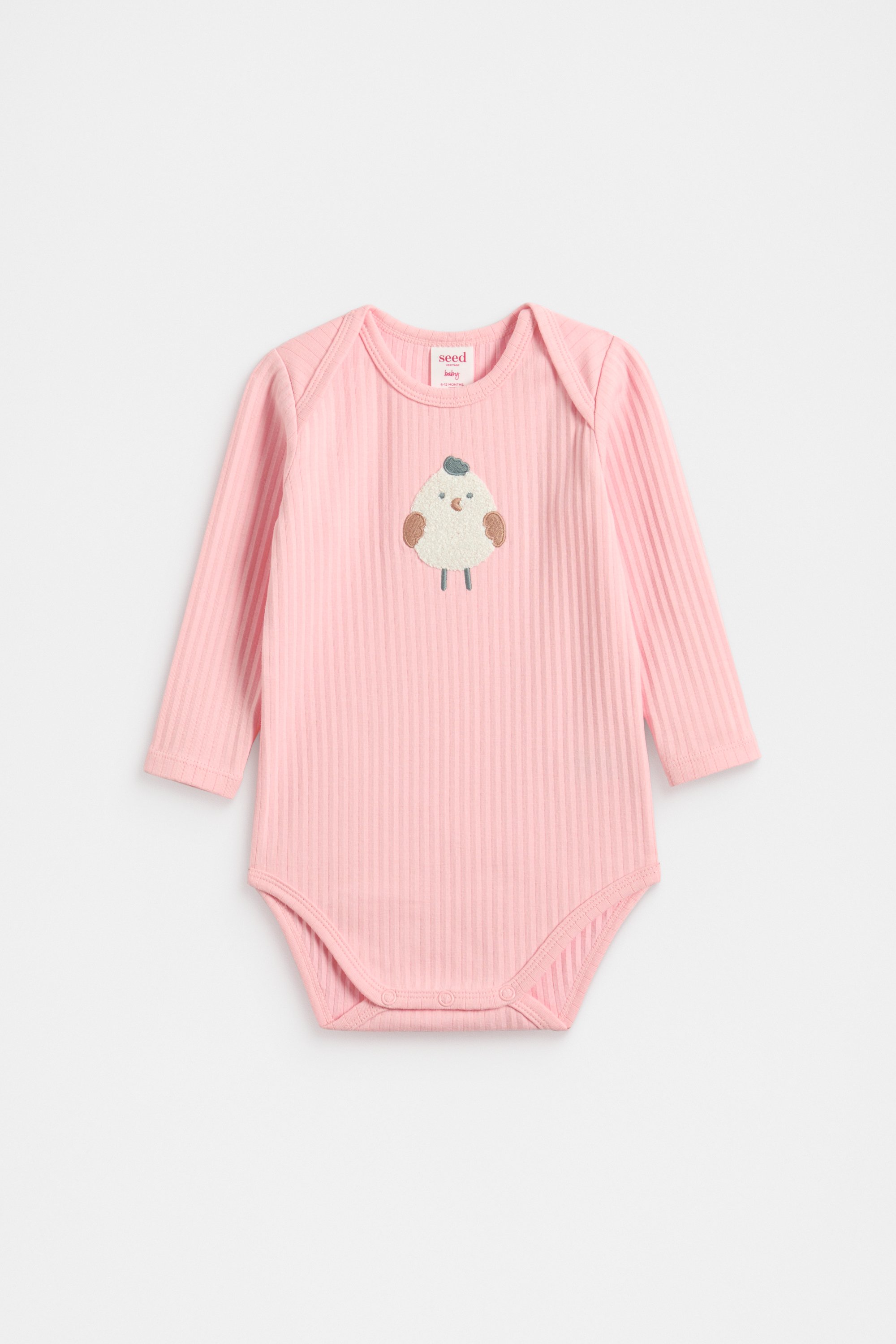 Made from an ultra-soft cotton blend with the perfect amount of stretch and a ribbed texture, this long-sleeved bodysuit is a must-have for any newborn. The round-neck bodysuit features an embroidered chick, as well as snap fastenings at the gusset for quick and easy changes.
