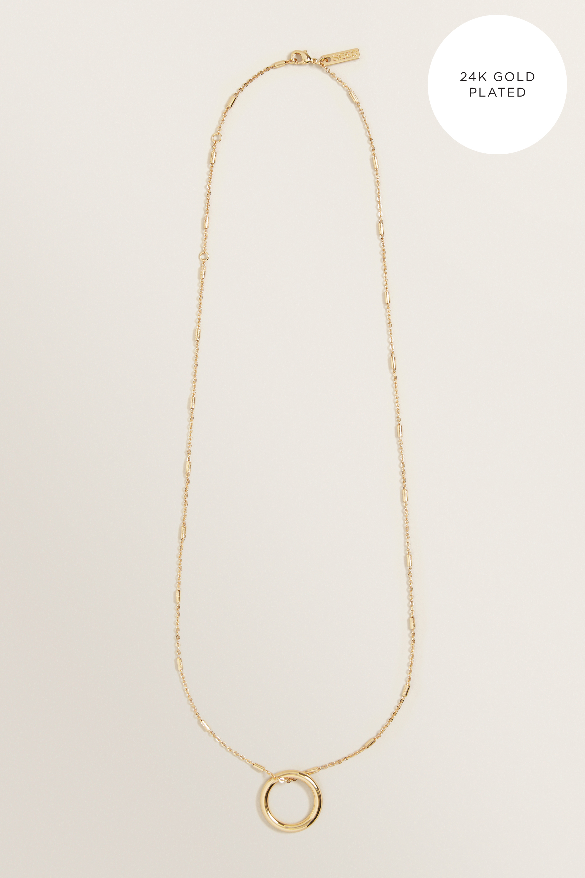 Introduce a delicate element to your Seed rotation, with this 24K plated collection. This Circle Pendant Necklace is designed with a fine chain and circular drop pendant.