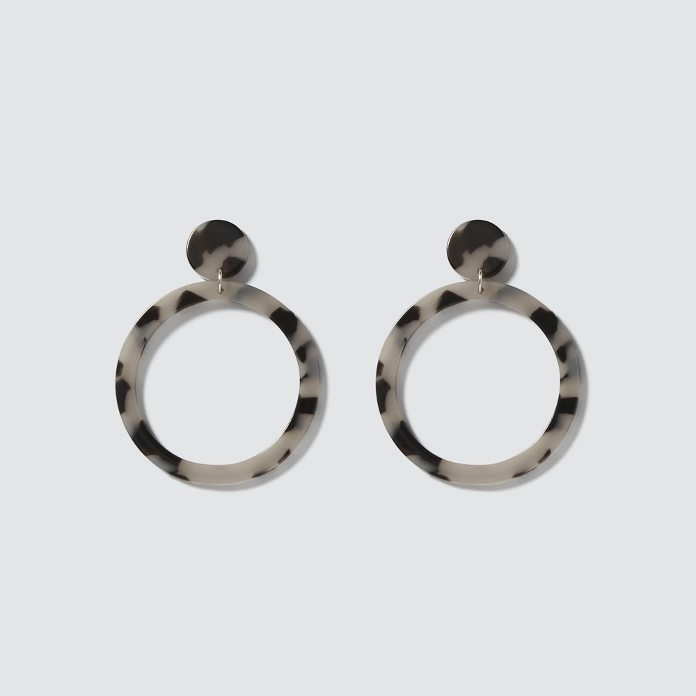 These circle earrings are the ultimate accessory. These earrings feature a drop design, in a tort shade and can be dressed up or down. Made from resin/metal, this piece is available in Tort and Grey Tort and in one size.