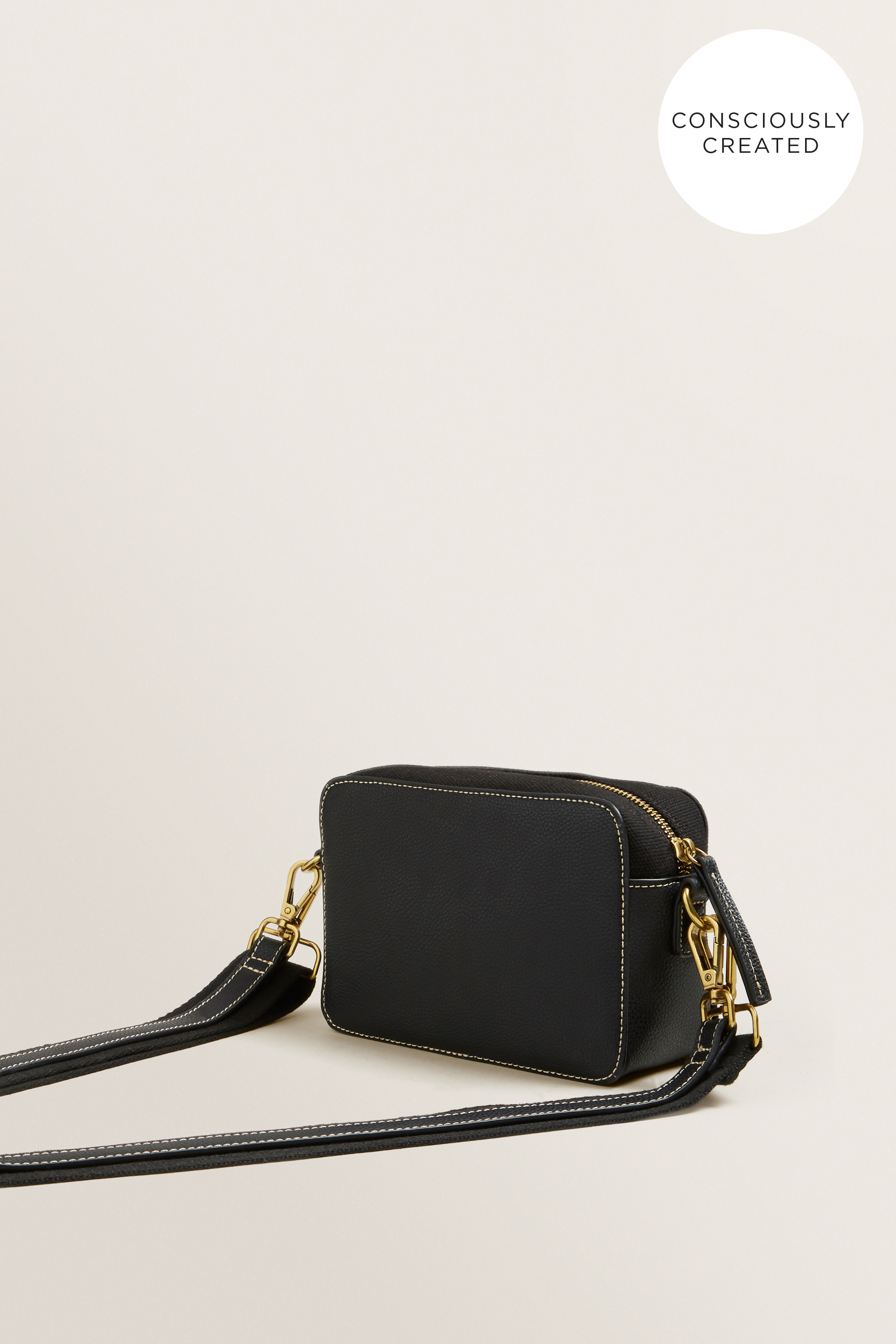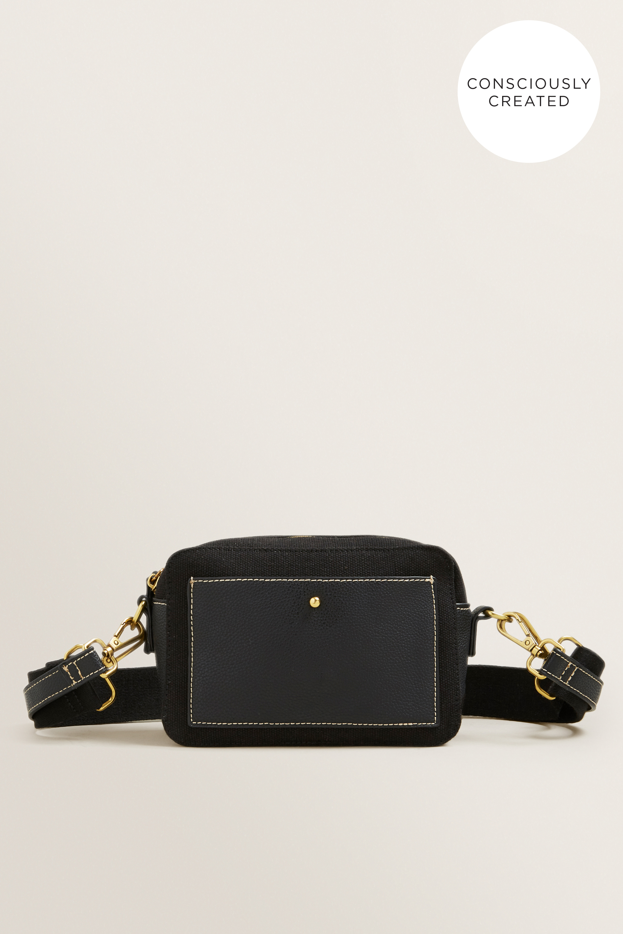 This capsule collection is made from responsibly sourced and recycled materials, helping to close the loop on waste to landfill. This Classic Box Sling features an adjustable woven shoulder strap, detailed with a zip-top closure, and a leather-look panelled pocket.