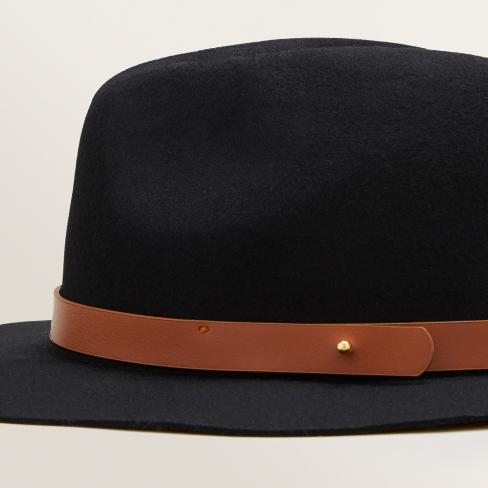 This Classic Panama features a timeless wide brim, fitted with a contrasting leather-look trim. Made from a plush Wool blend, this Classic Panama is available in one size.
