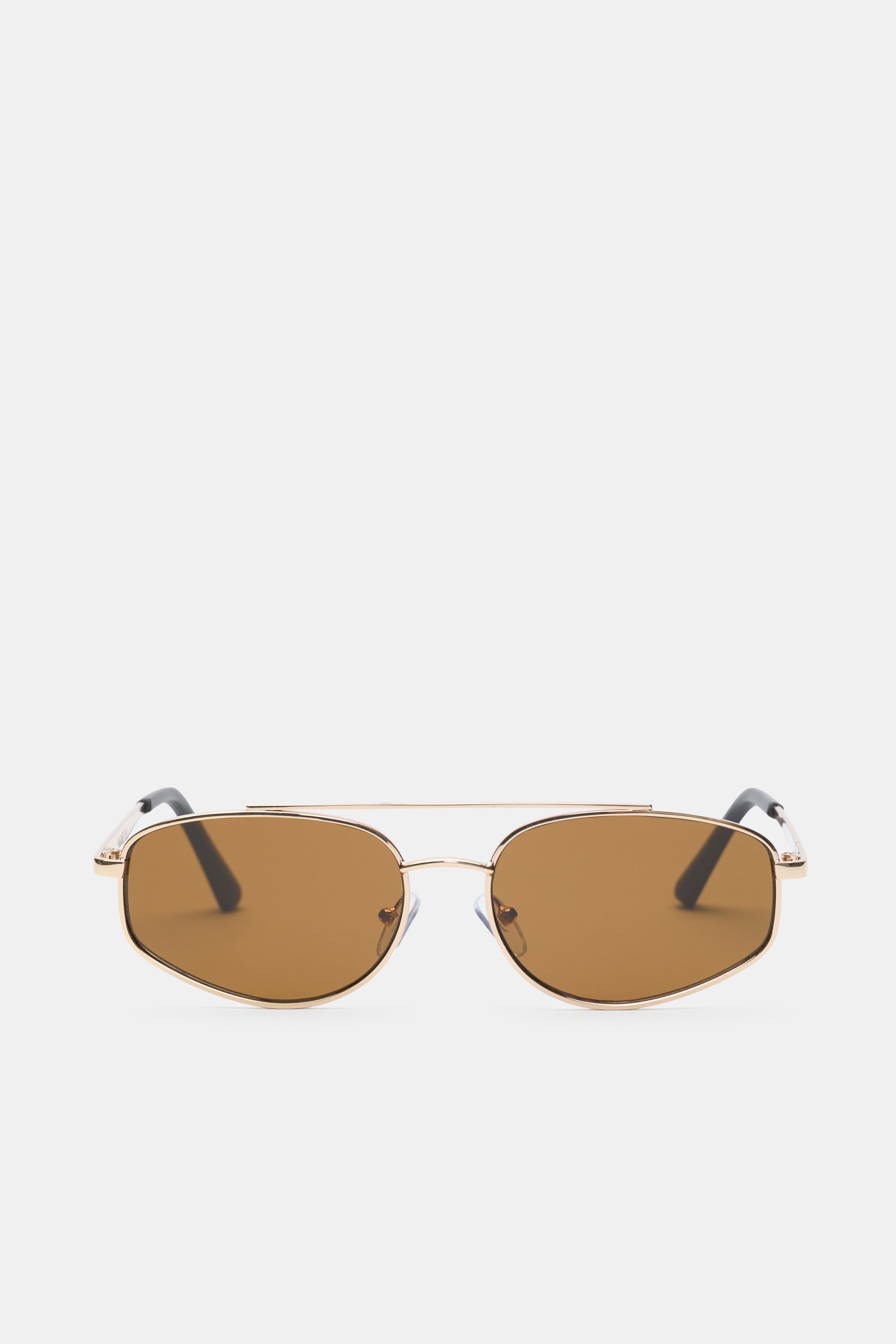 A modern update on a classic aviator design, these sunglasses are an essential pair to complete your look. They feature an oval aviator shape with gold toned details. The lenses comply with the mandatory requirements for the Australian and New Zealand standards for Category 3 protection.