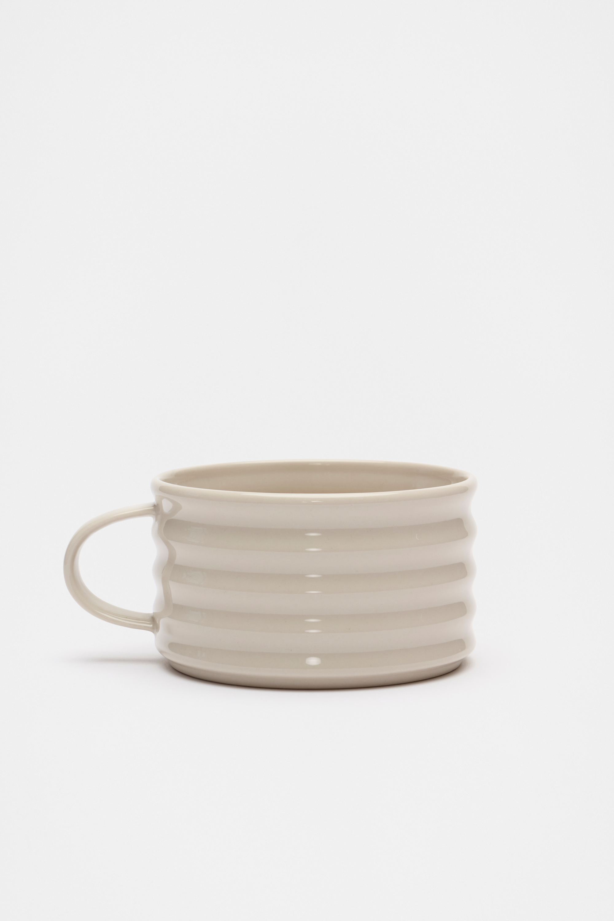 This mug adds interest to your collection with a sculptural touch and a refined, smooth glaze finish. Designed for winter-warming soup, it's generously sized and features a handle and a ripple design. Style with the accompanying ripple pieces for a curated feel at home.