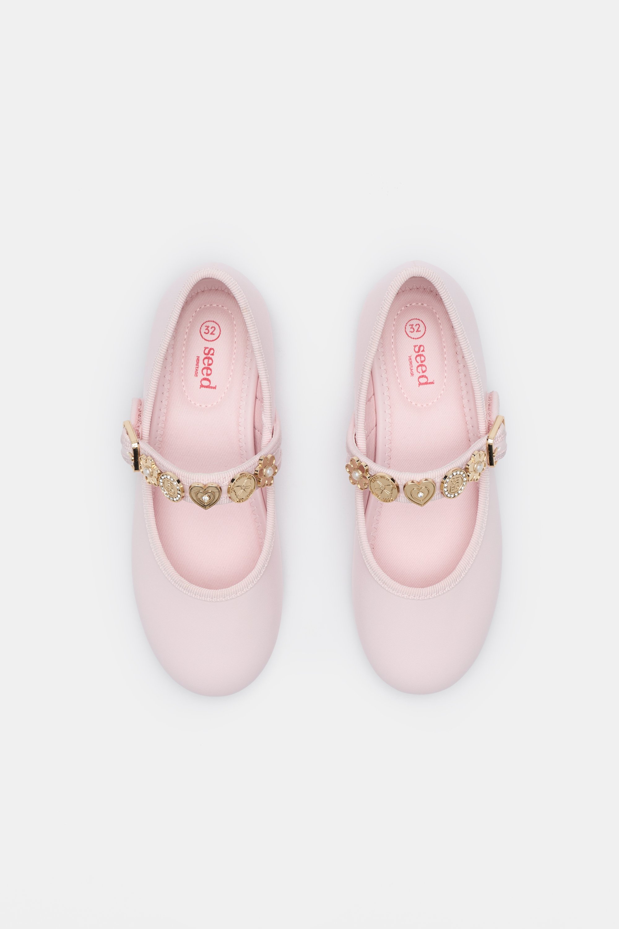 So chic and so stylish, these ballet flats have a single strap with a design of Seed Heritage coin charms. They feature a low profile and are crafted from a soft PU.
