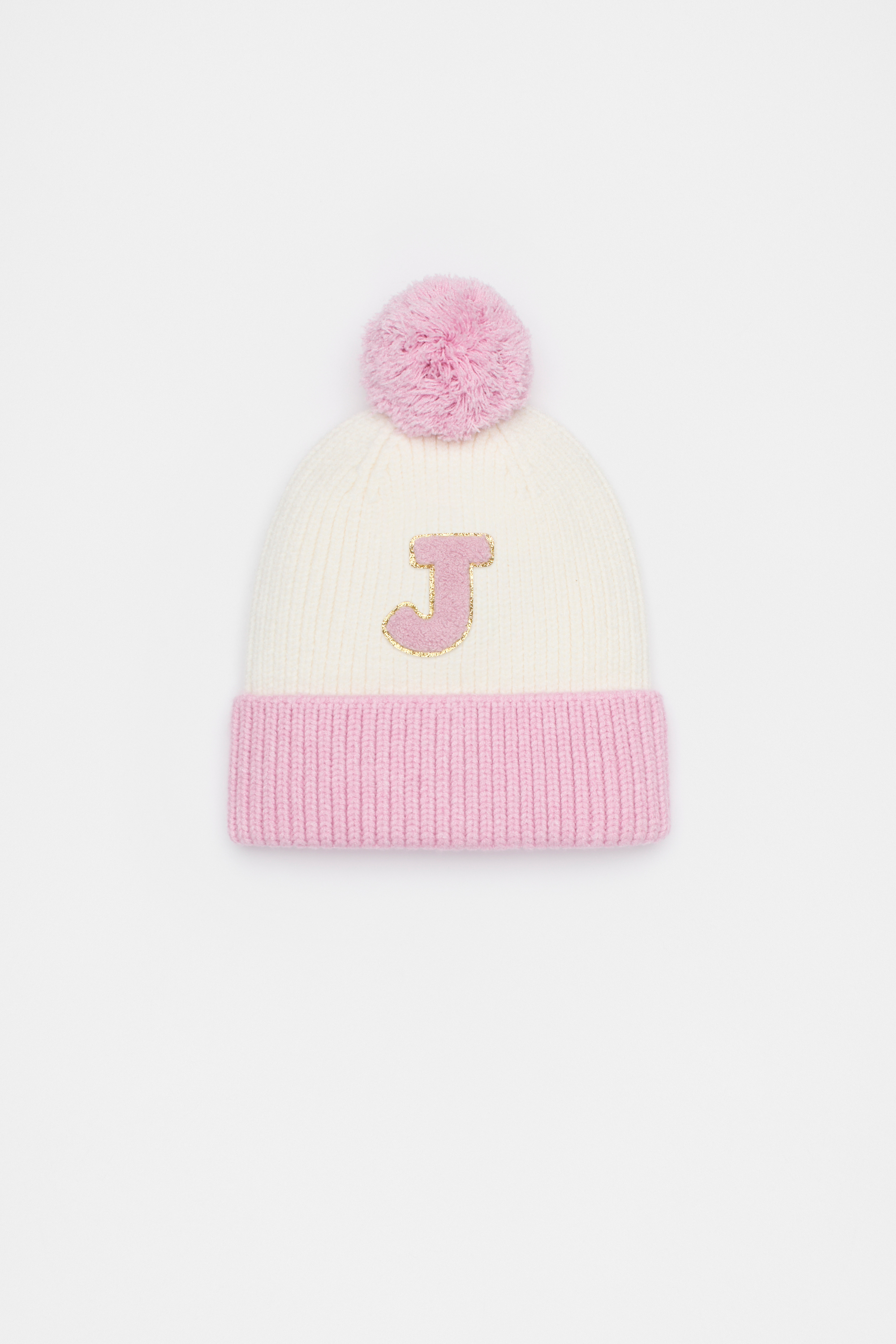 This adorable beanie has a ribbed hem for a comfortable fit. Featuring a cute pom pom, the contrast initial motif finished in gold glitter adds a personalised touch.