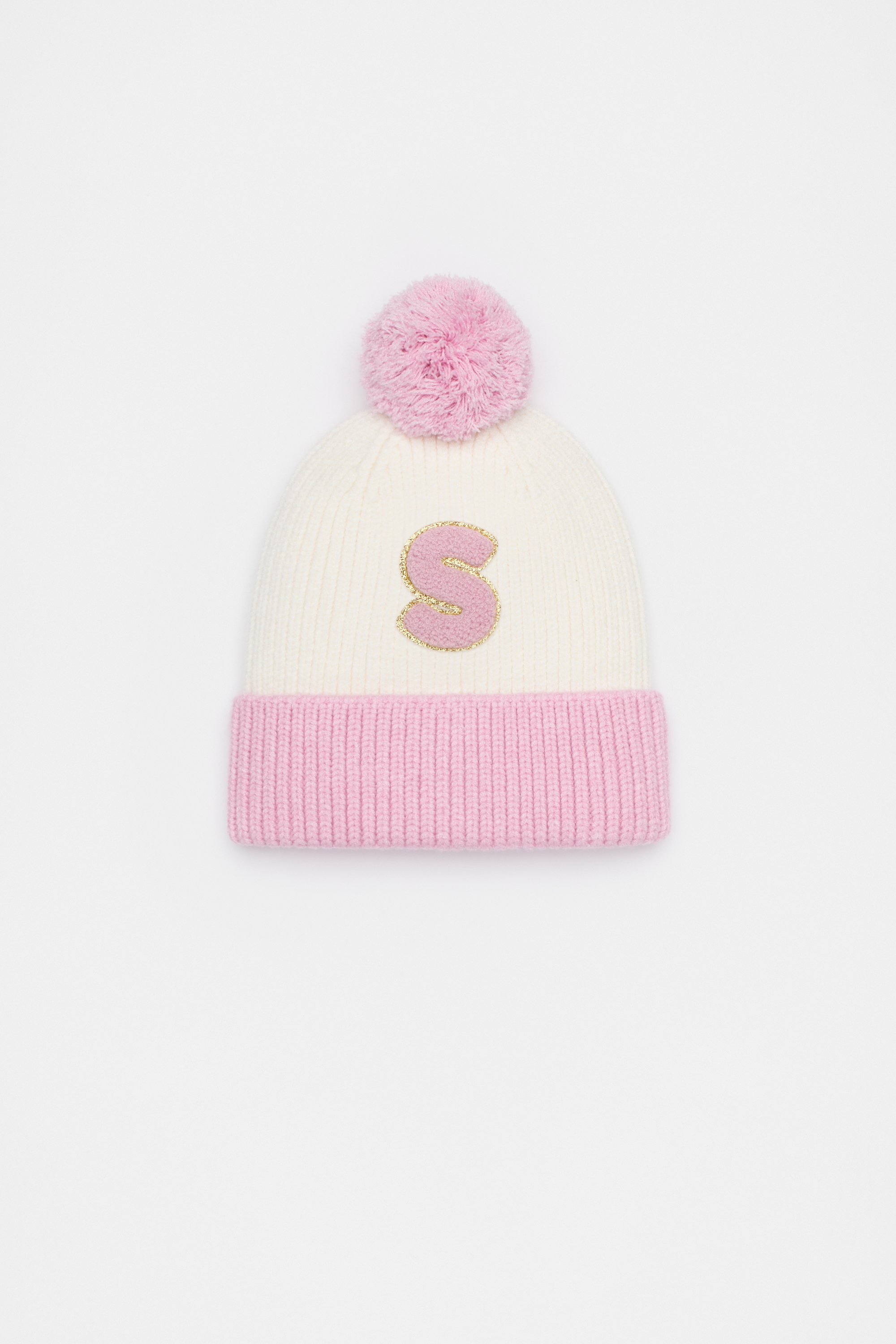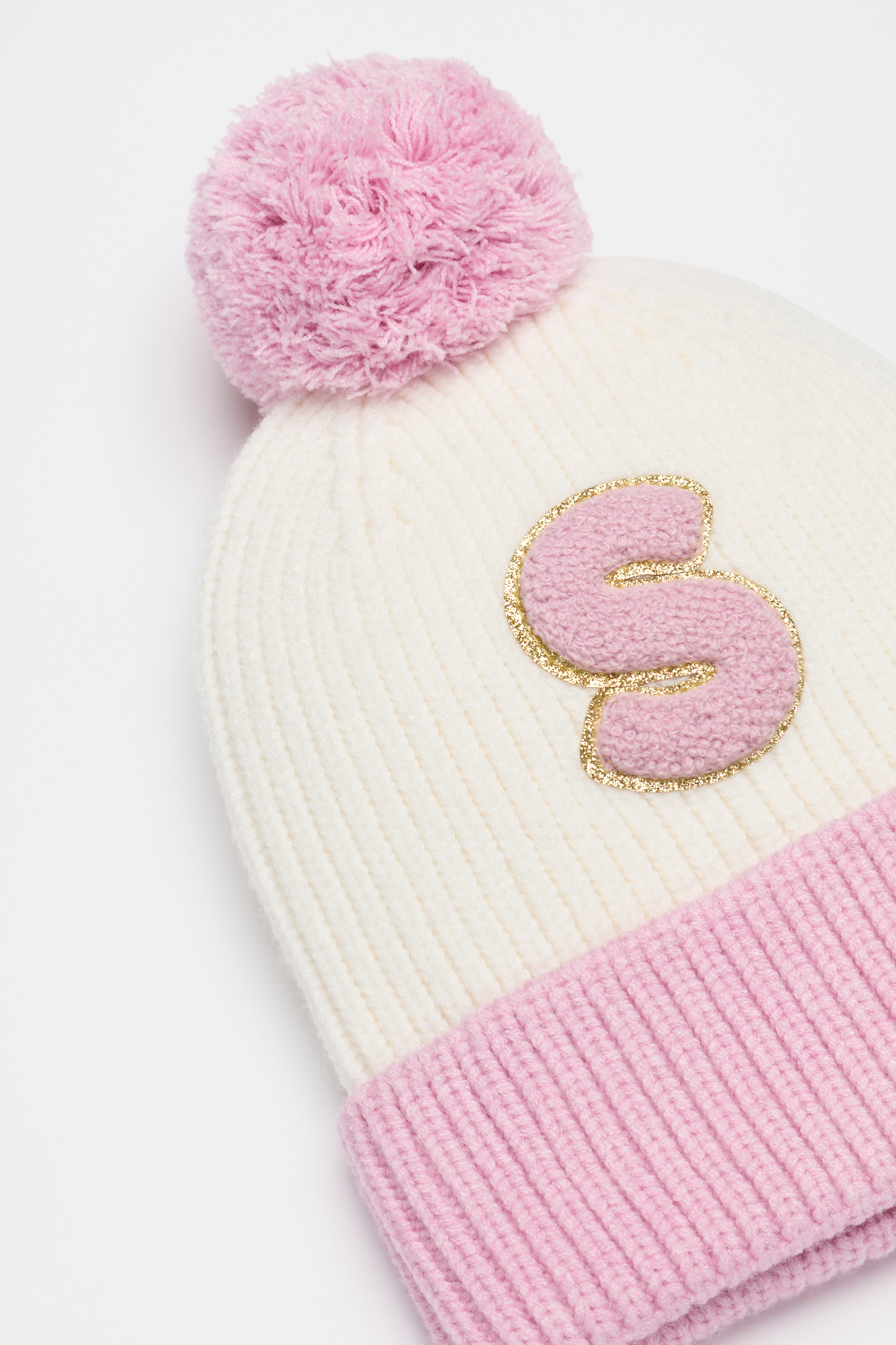 This adorable beanie has a ribbed hem for a comfortable fit. Featuring a cute pom pom, the contrast initial motif finished in gold glitter adds a personalised touch.