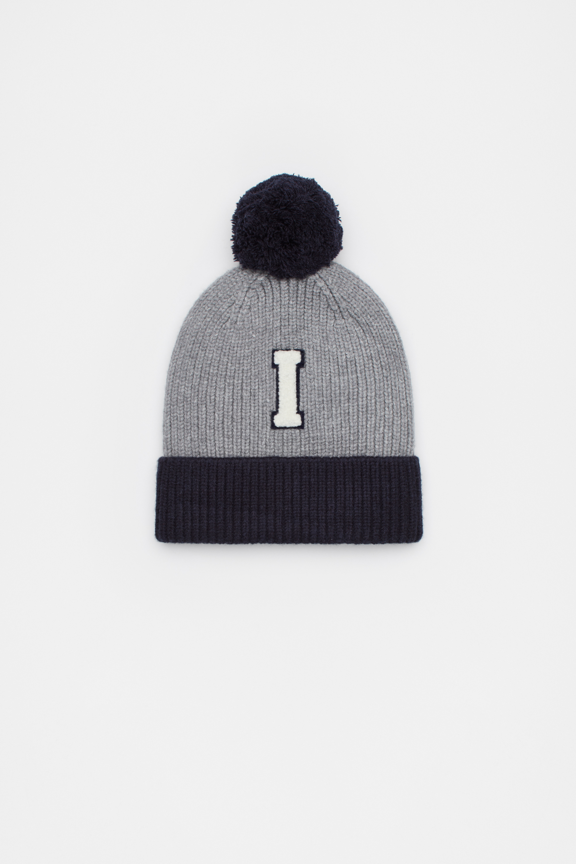 A cool and on-trend style, this colourblock beanie features a pom pom and a chenille initial patch.