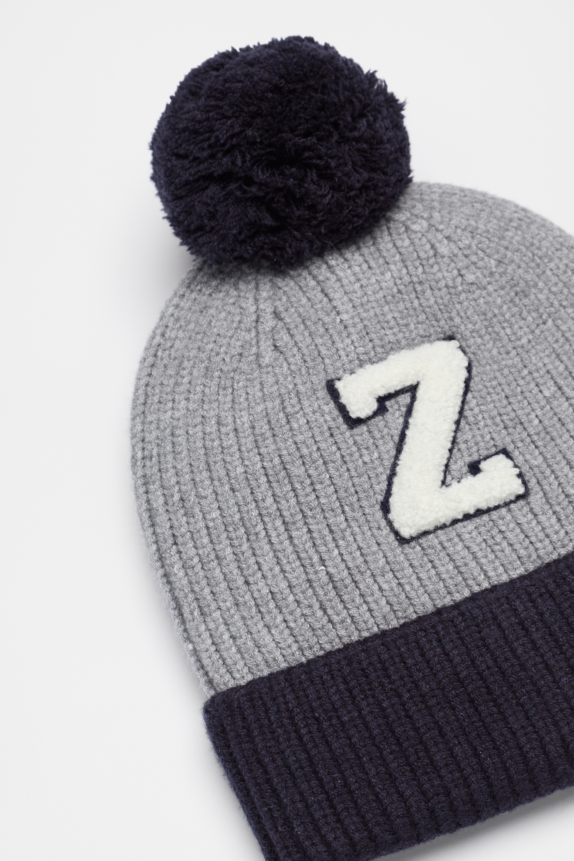 A cool and on-trend style, this colourblock beanie features a pom pom and a chenille initial patch.