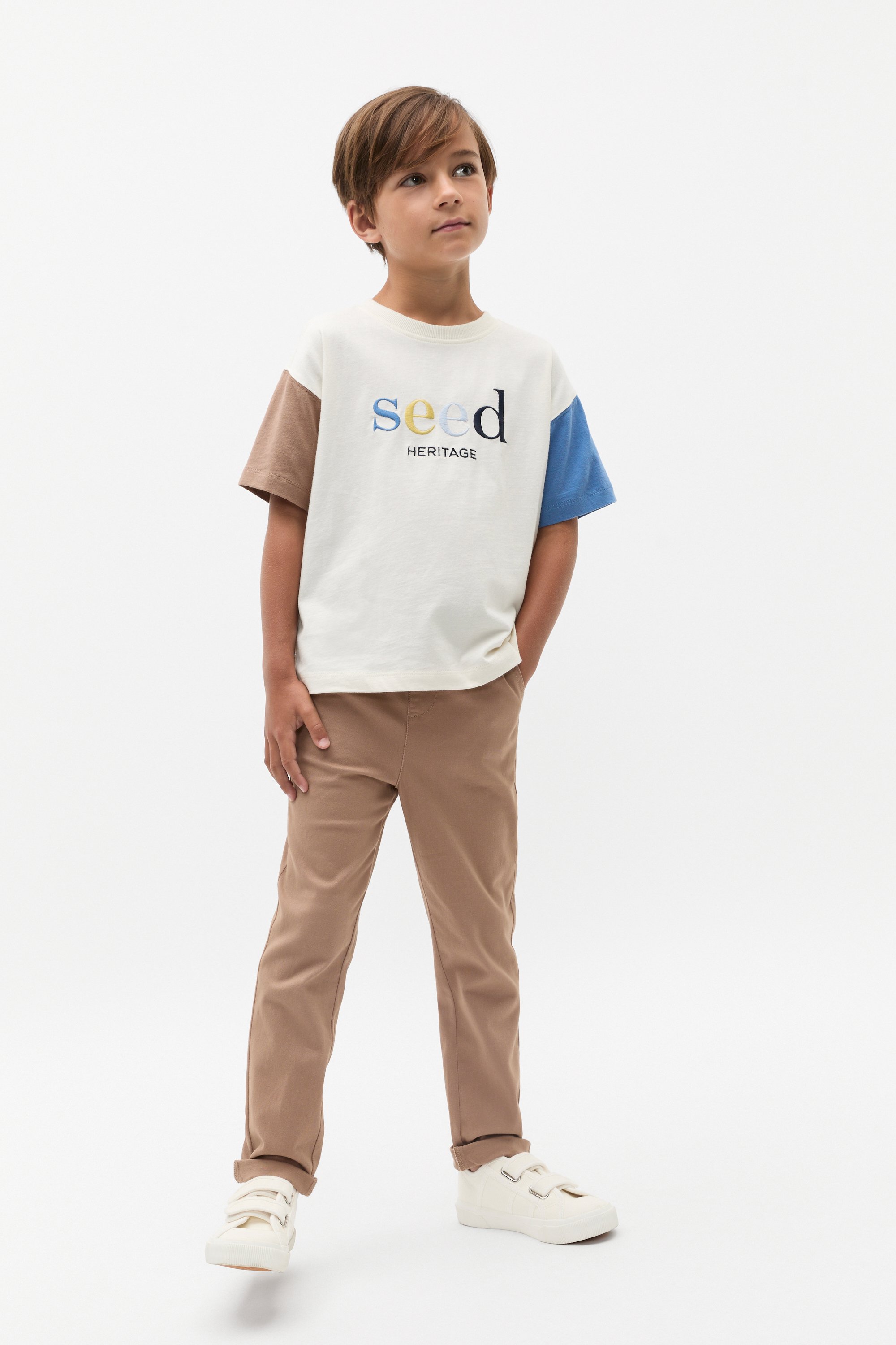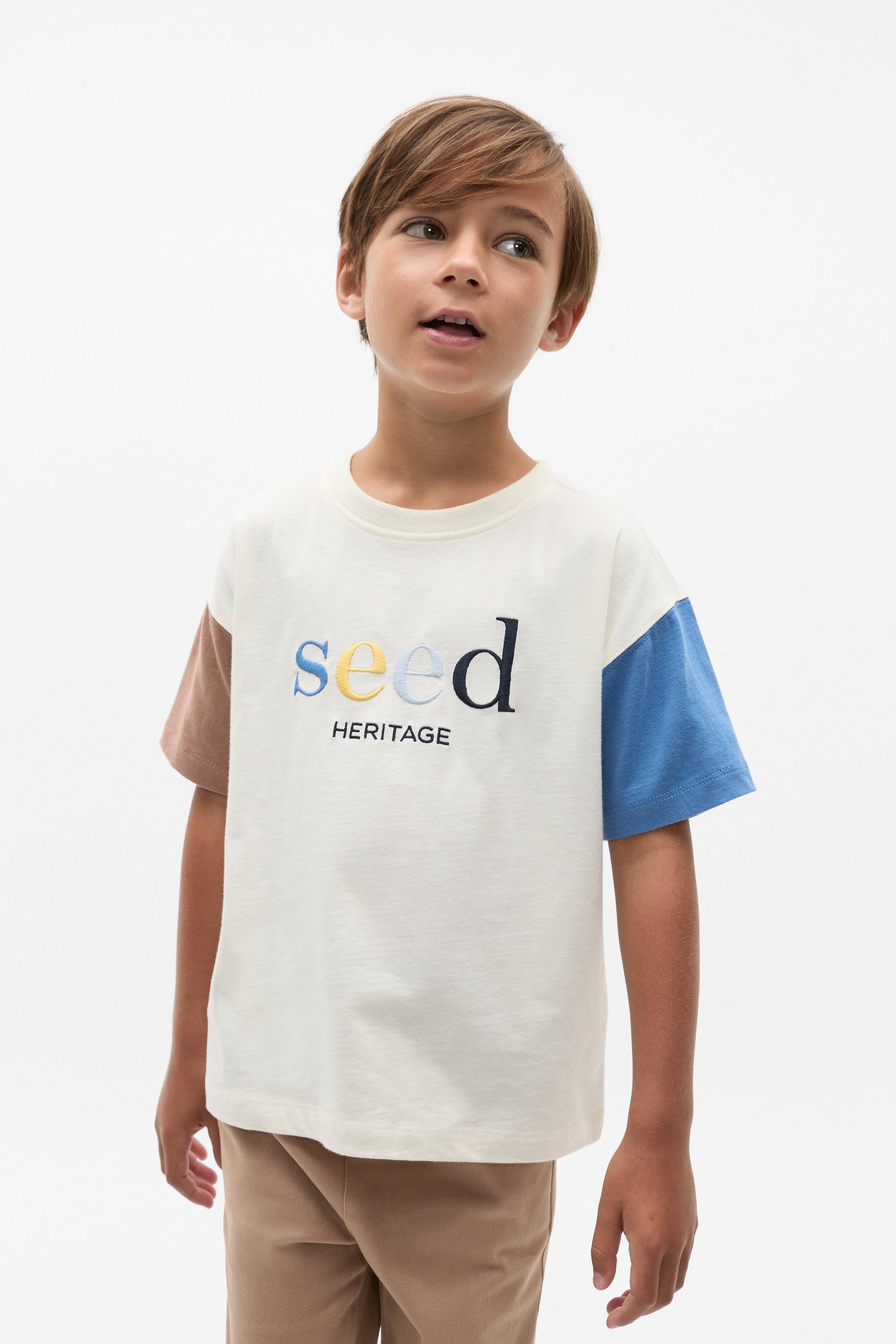 Sure to slot right into his wardrobe, this tee features a fun colourblock design and a relaxed fit. It also has a ribbed round neck, short sleeves, and an embroidered Seed Heritage logo. Crafted from cotton.