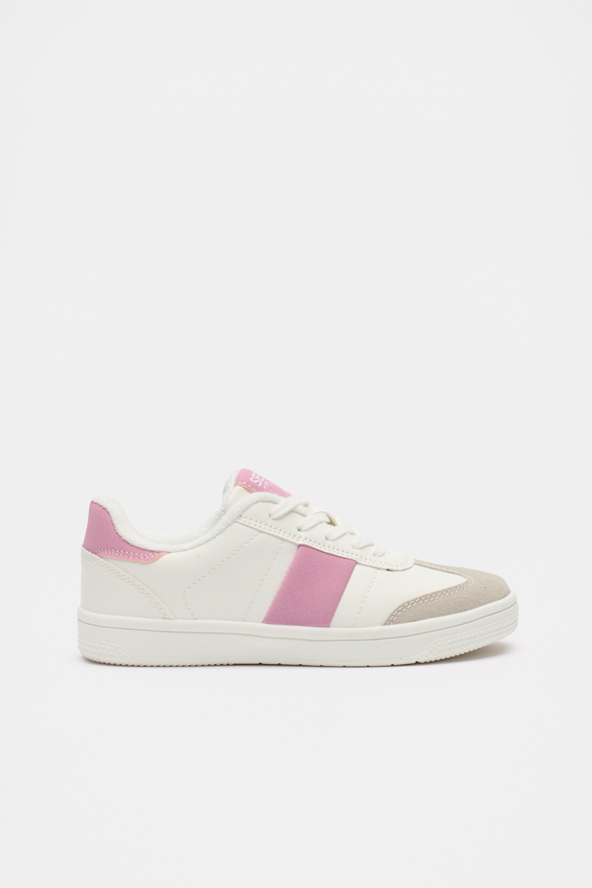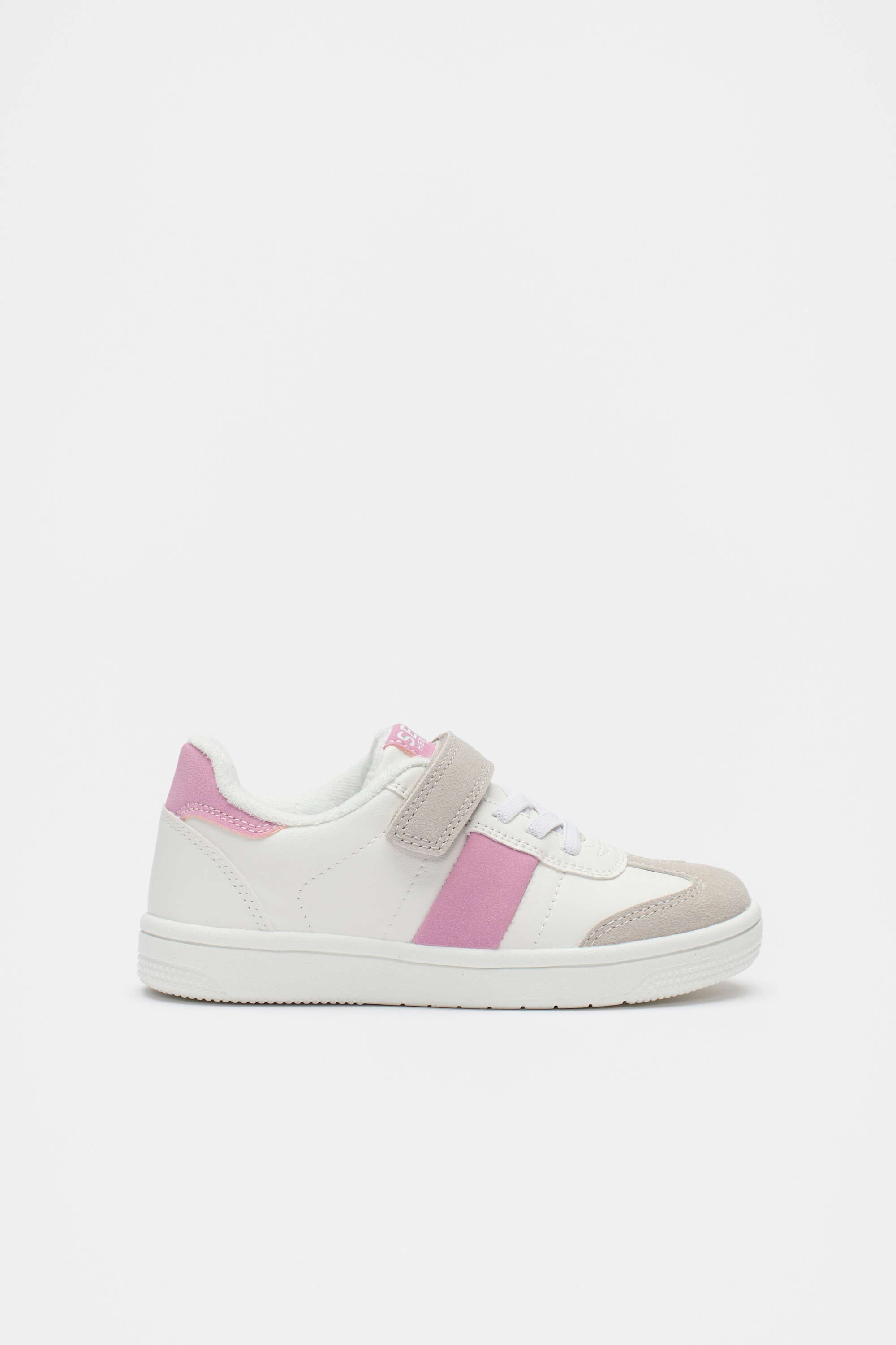 An ideal staple shoe for their wardrobe, these sneakers feature a colourblock design, with textured accents and gum soles. Sizes 24–29 have hook-and-loop closures with elastic laces, while sizes 30–35 are lace-up.