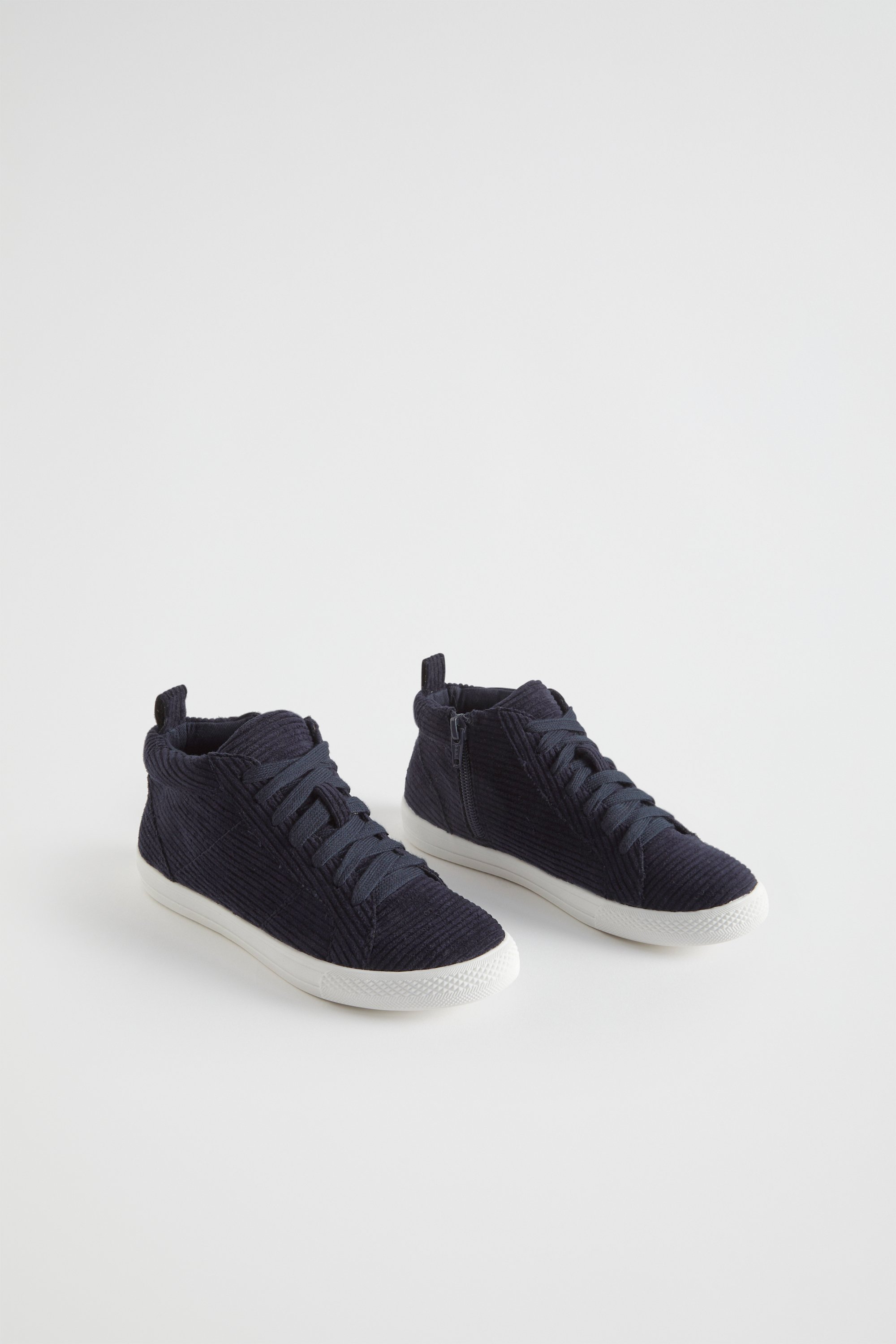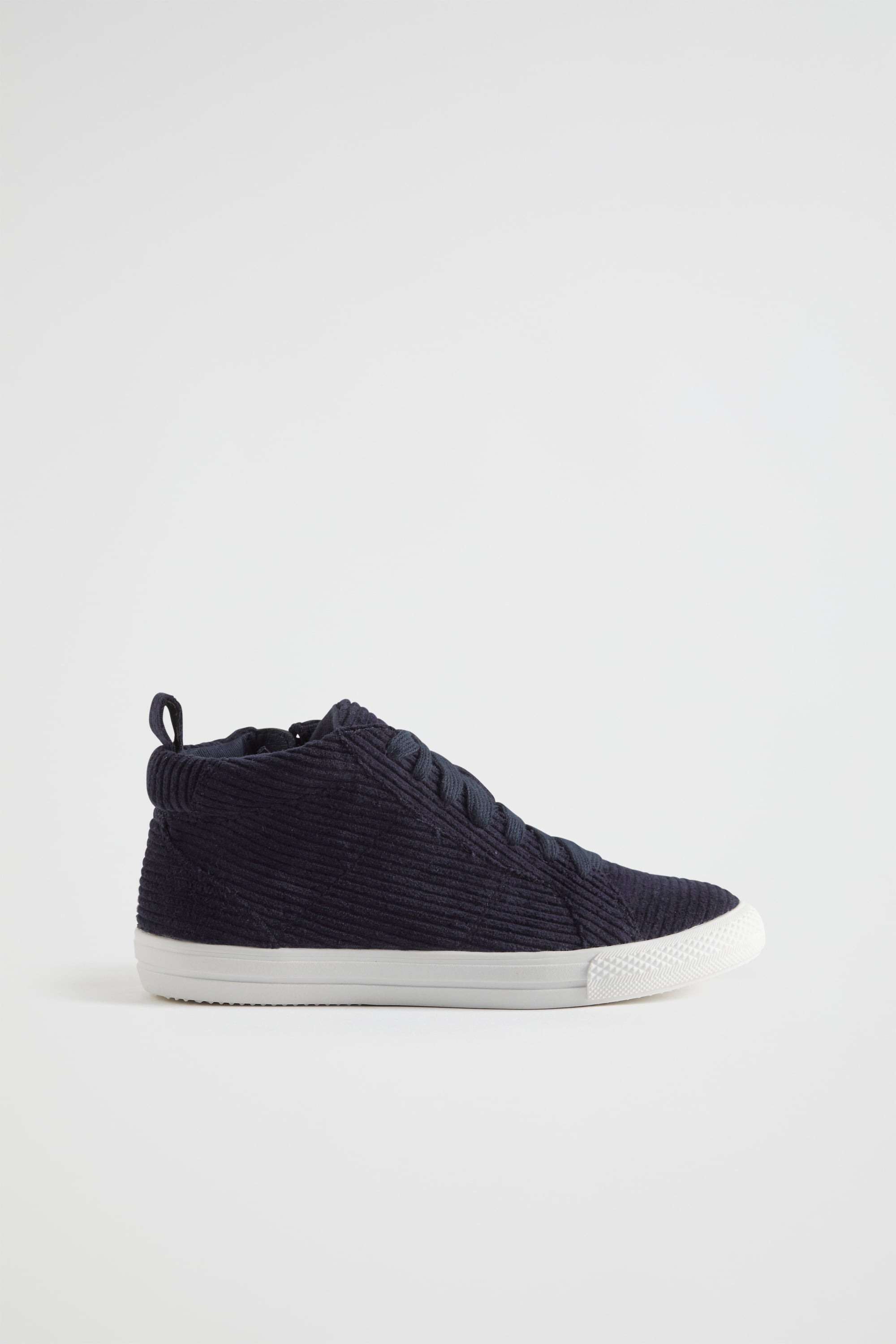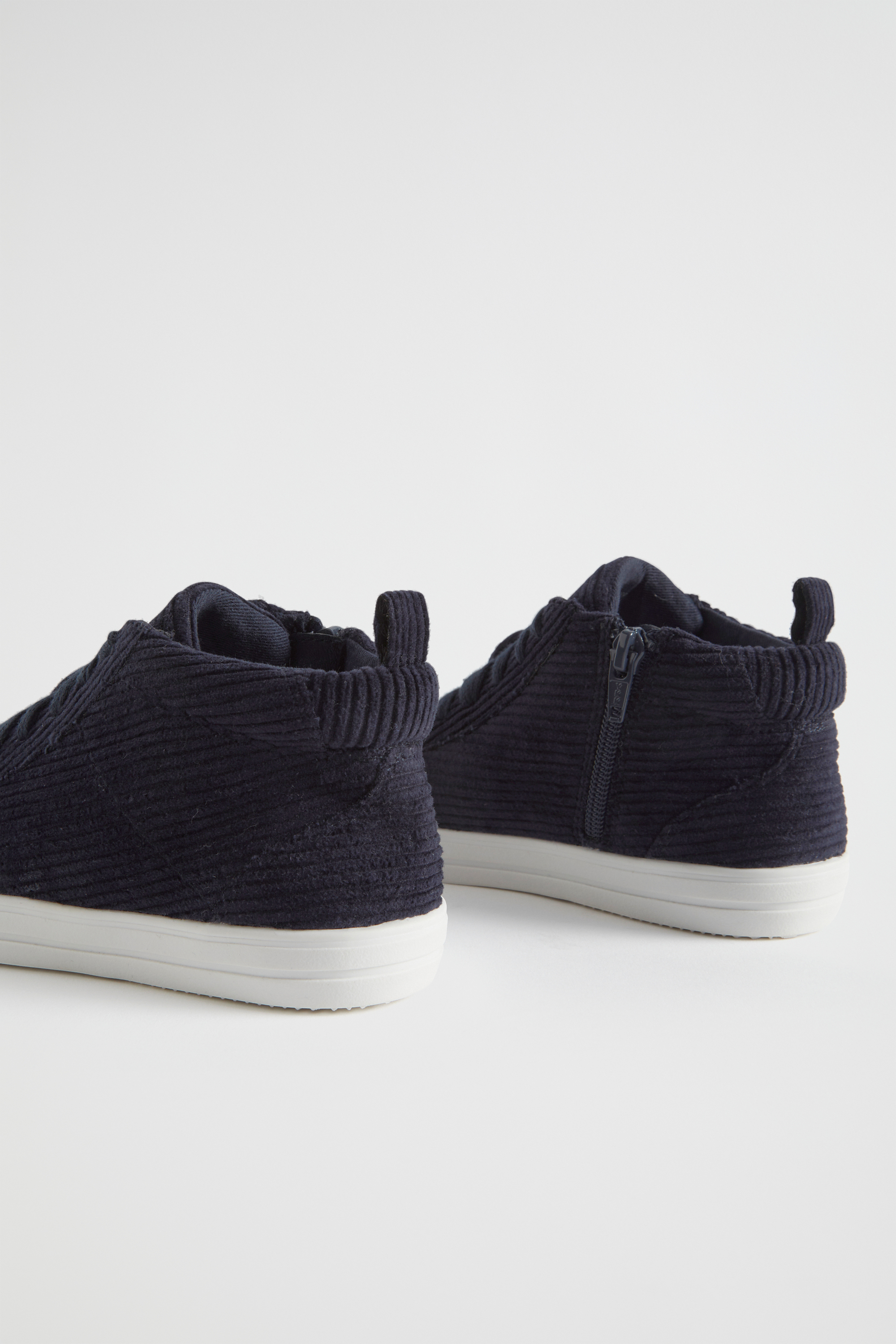 Fun and easy to style, these high-top sneakers feature laces, a cushioned ankle, seam details, a zip at the inner ankle, and a classic rubber sole. They're finished in a retro-style corduroy texture.