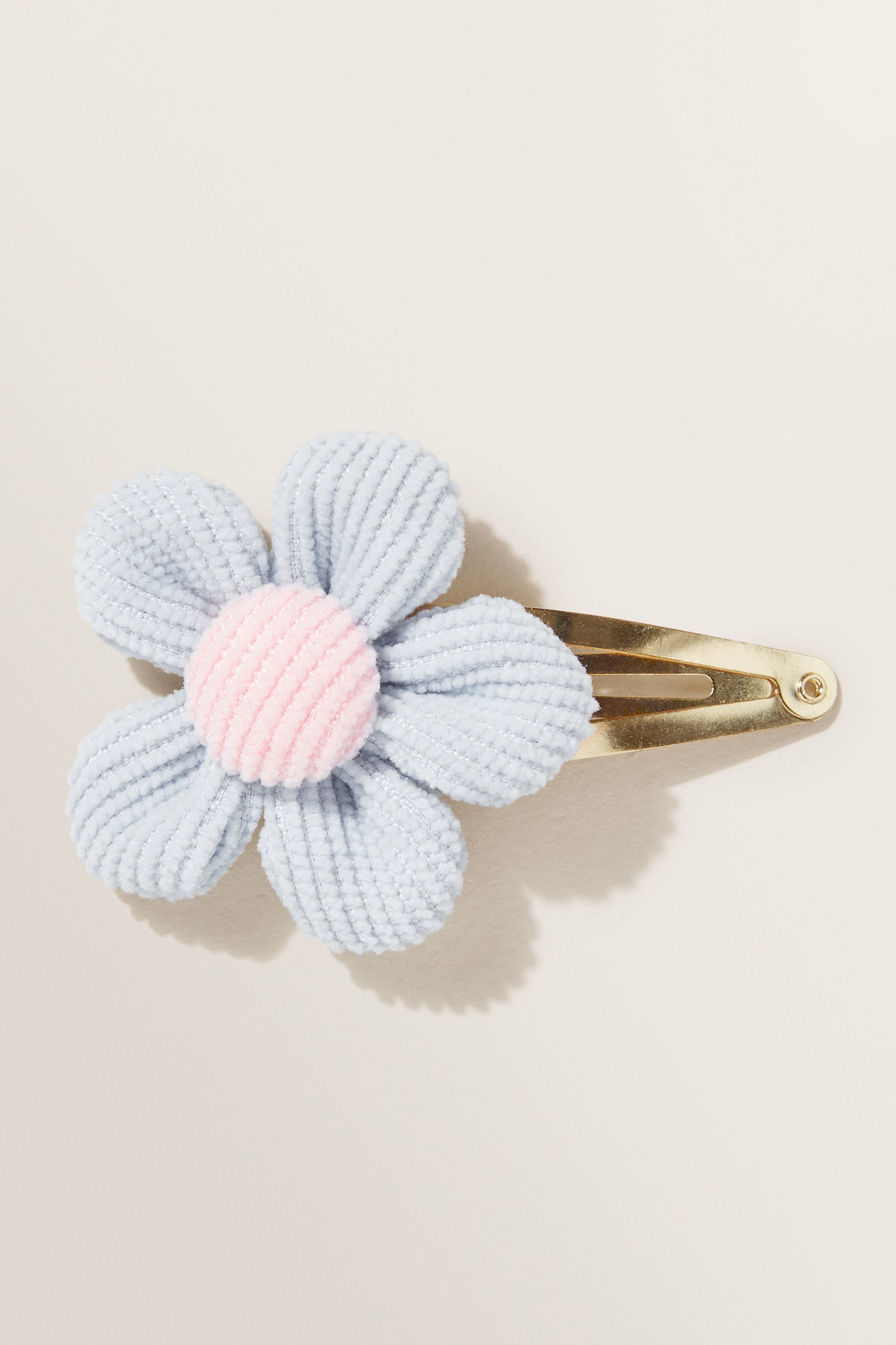Made from soft corduroy in the shape of gentle flower, this clip will add a hint of sunshine to any look. The flower has a contrast centre and is mounted on a shiny snap clip. This product is not a toy and is not suitable for children 3 years and under.