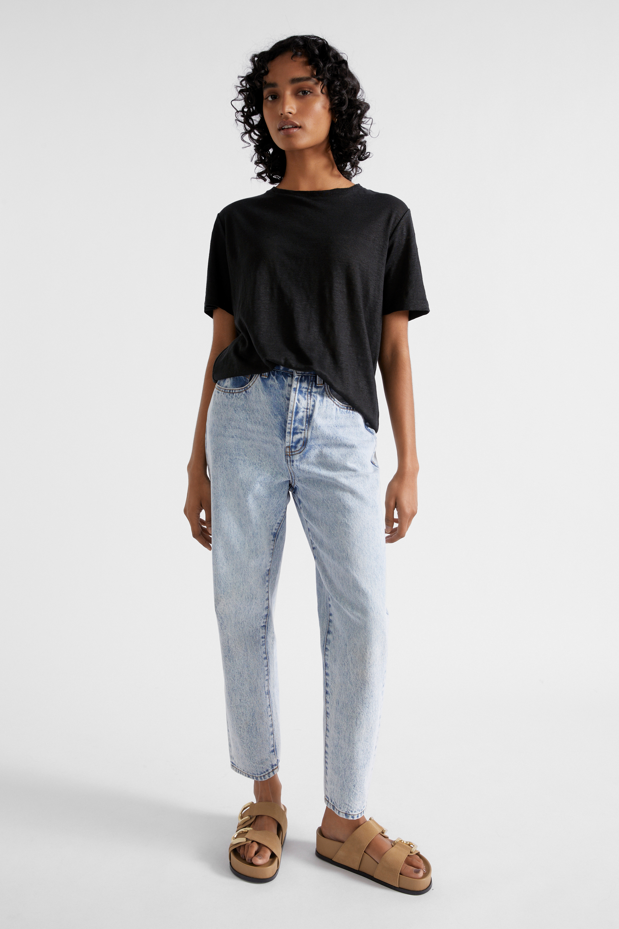 With a relaxed, slouchy fit, this tee is an easy-wearing wardrobe staple. It features a crew neck and short sleeves, finishing with a longline dipped hem. The tee is crafted from premium linen.