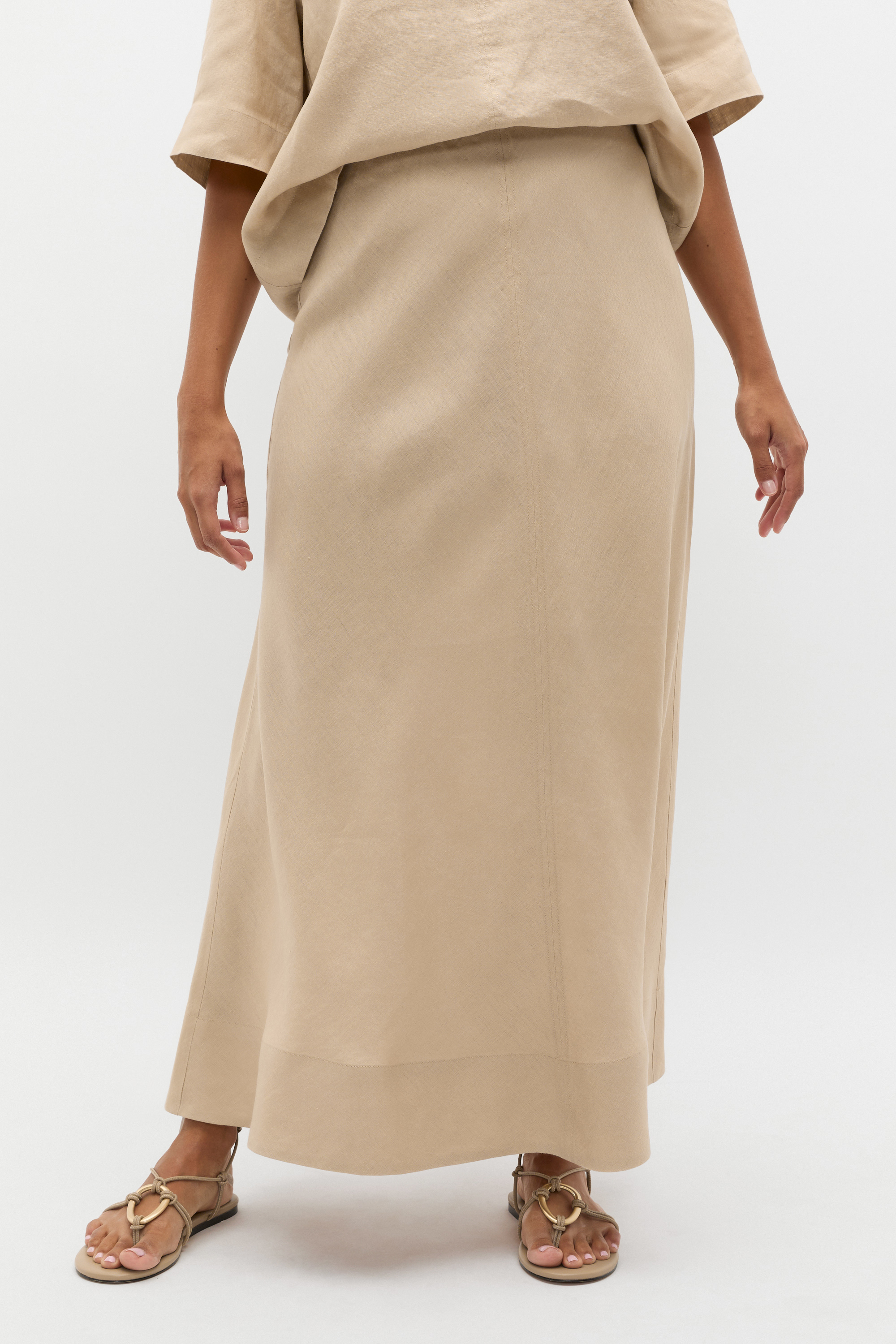 Simple and chic, this linen skirt adds a sophisticated touch to your day-to-day wardrobe. Crafted in premium linen, it features a fixed waistband, a front seam detail and a flowing A-line shape falling to a maxi length. Pair with the coordinating linen pieces for effortless tonal styling.