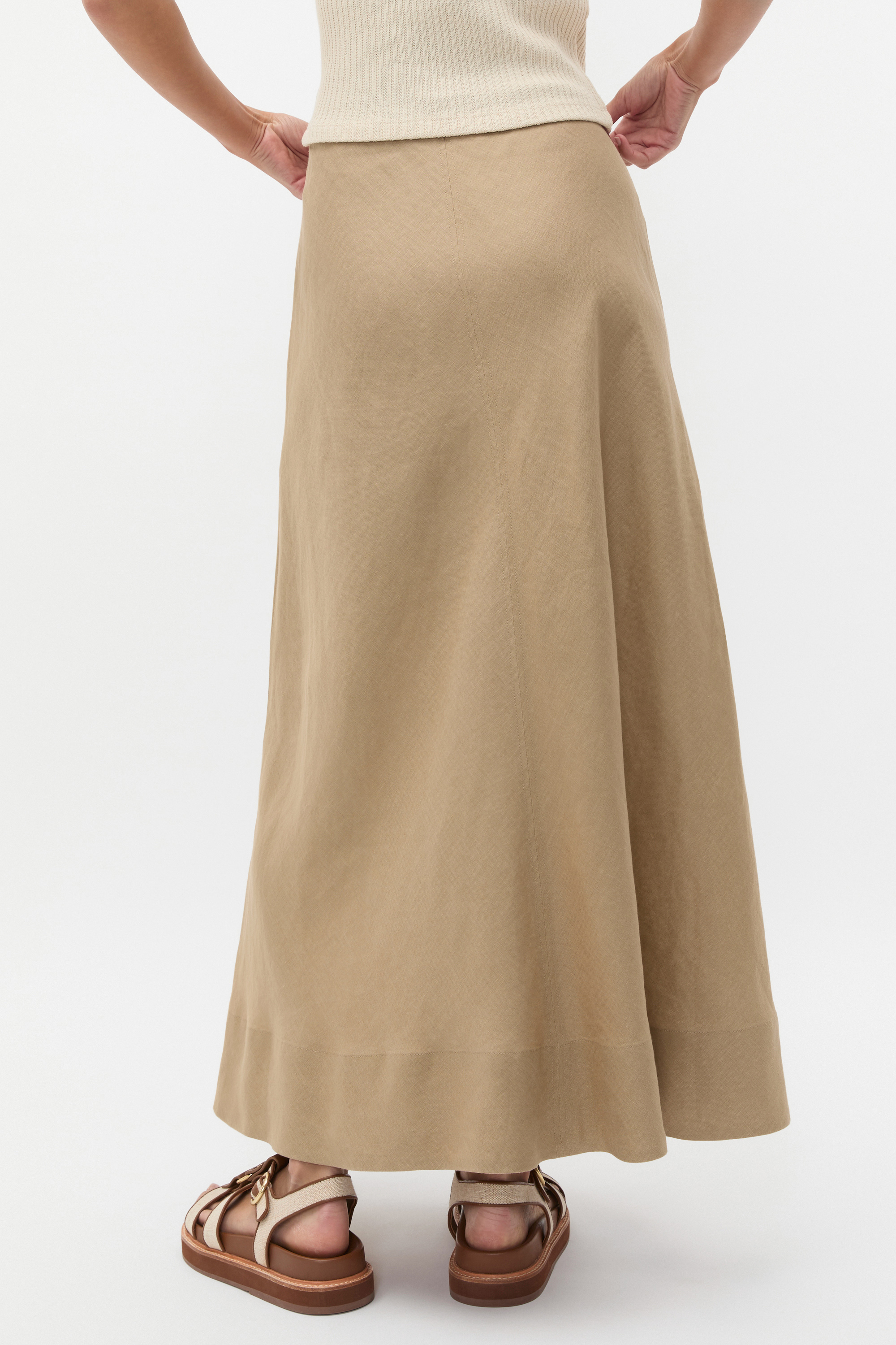Simple and chic, this linen skirt adds a sophisticated touch to your day-to-day wardrobe. Crafted in premium linen, it features a fixed waistband, a front seam detail and a flowing A-line shape falling to a maxi length. Pair with the coordinating linen pieces for effortless tonal styling.