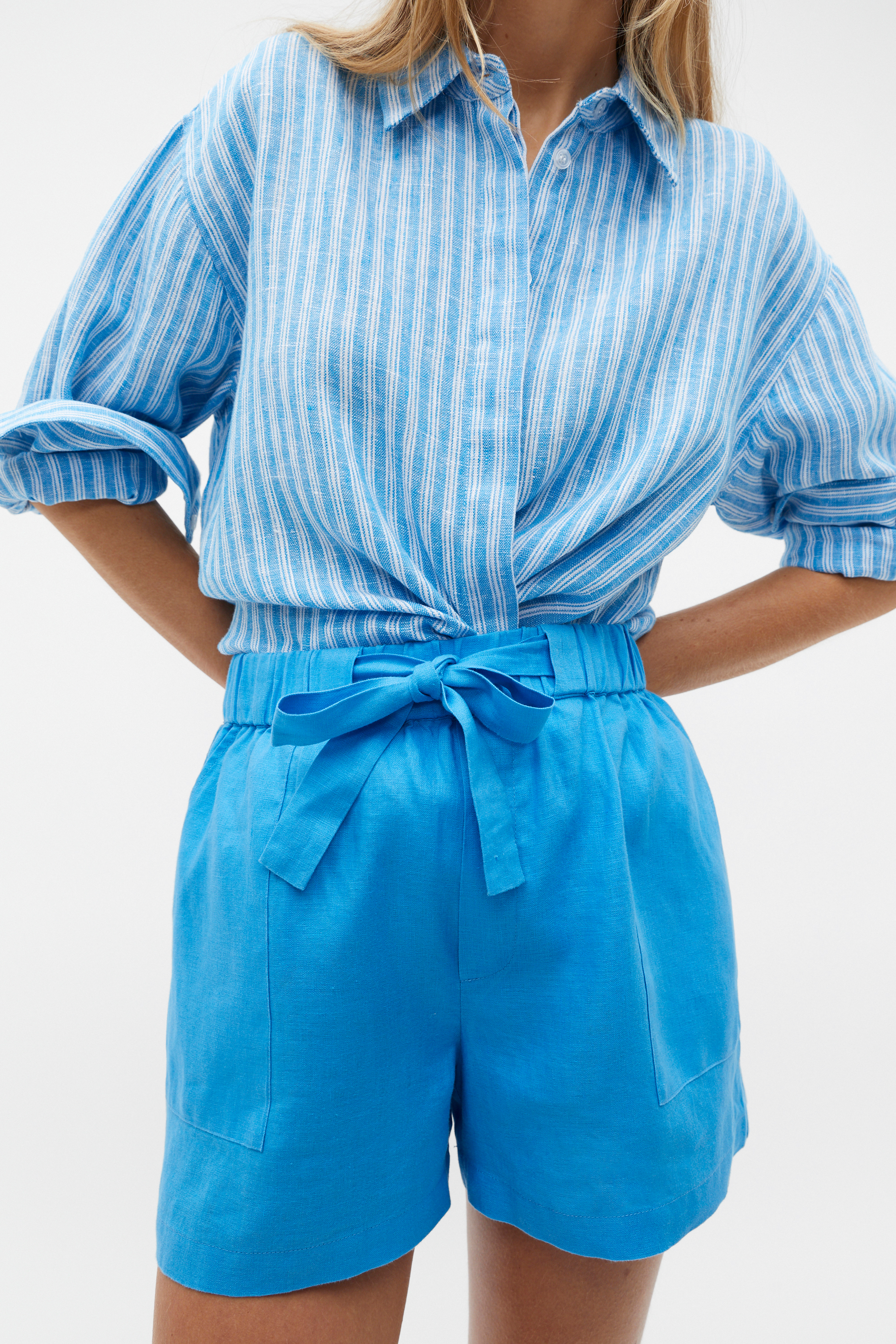 Versatile and chic, these tie waist shorts are the perfect option for summer styling. They feature an elasticated waistband, front pockets and a tie waist for a comfortable fit.