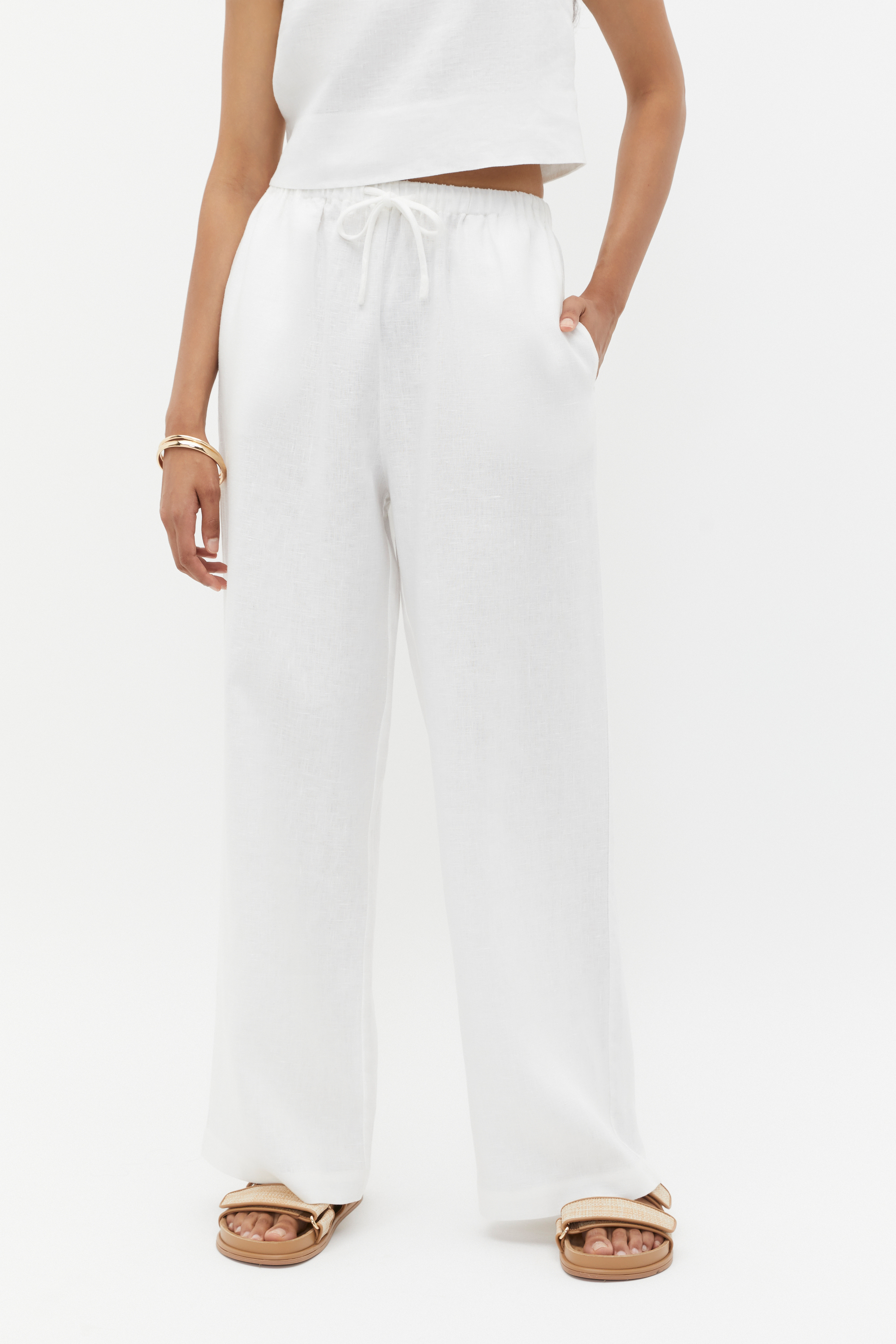 Core Linen Wide Leg Tie Pant  Whisper White  hi-res Core Linen Wide Leg Tie Pant  Whisper White  hi-res Core Linen Wide Leg Tie Pant  Whisper White  hi-res Core Linen Wide Leg Tie Pant  Whisper White  hi-res