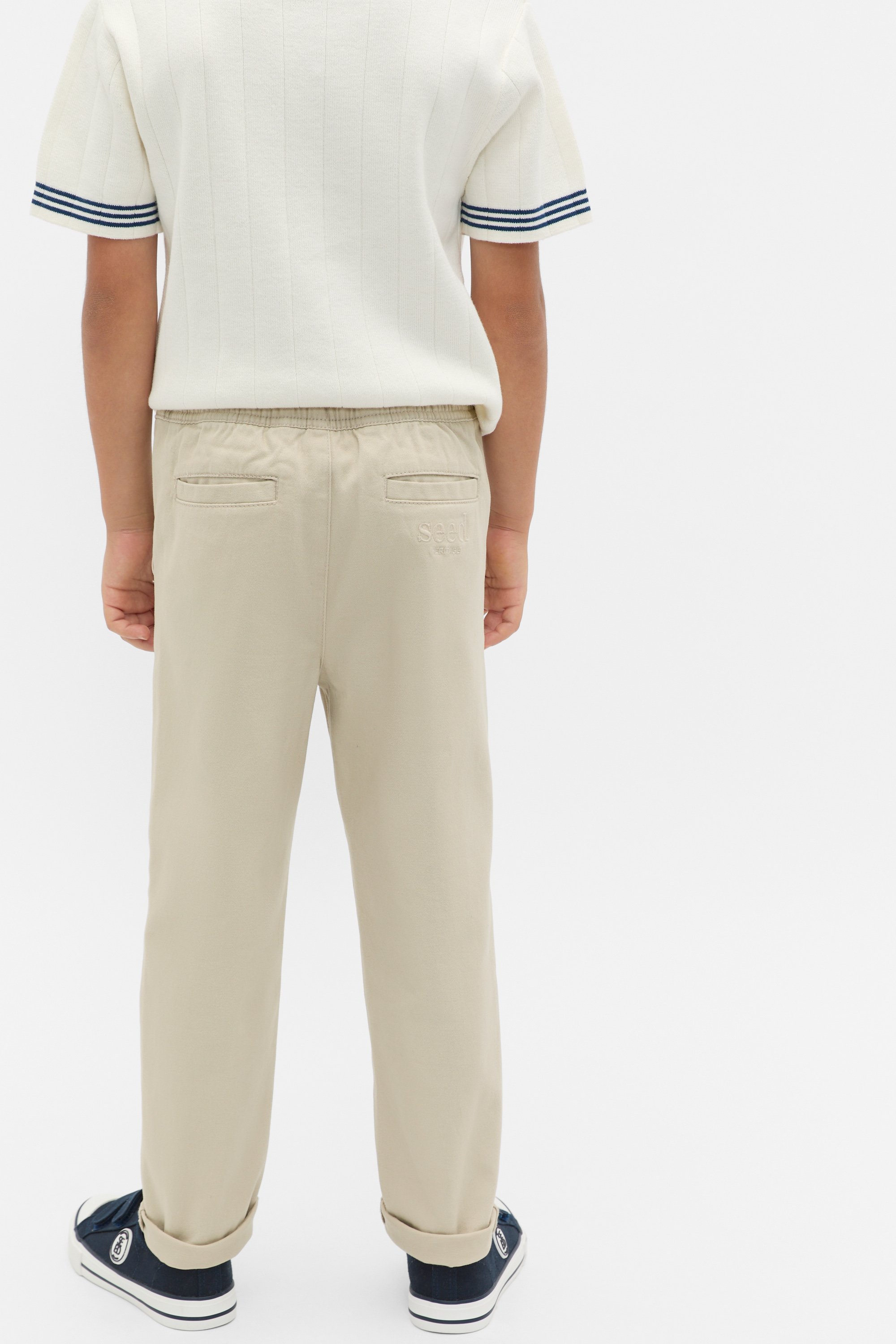 Smarten up his look with these chino pants, crafted in premium cotton. They feature an elasticated waistband with a drawstring, pockets and a straight leg design. Available in two different colours for versatile styling.