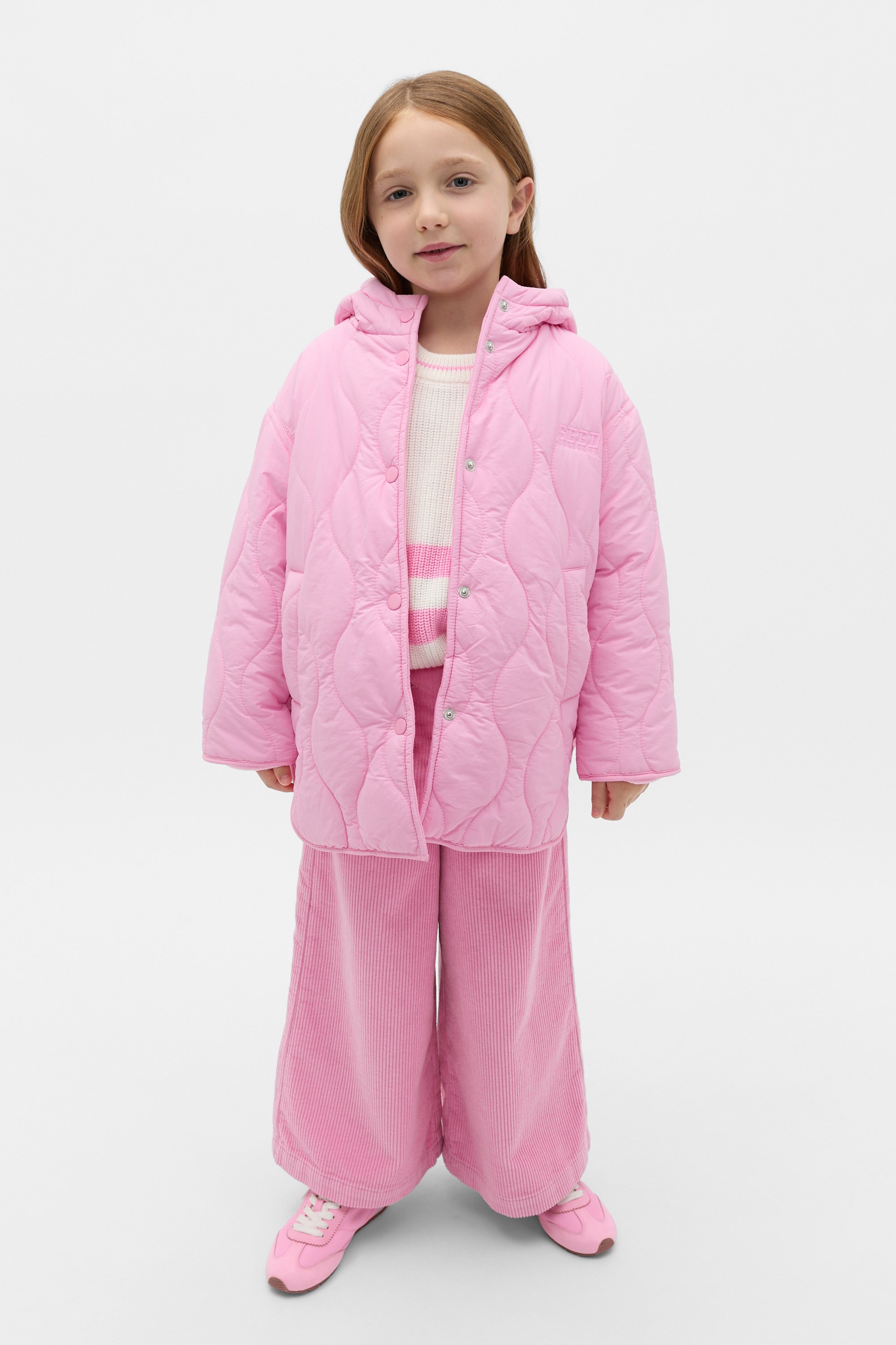 Perfect for the changing seasons, this little puffer jacket pairs cool with comfort, perfect for outdoor adventures. Crafted with a quilted outer and a soft fleece lining, It features a hood, a button through front, long sleeves and angled pockets.