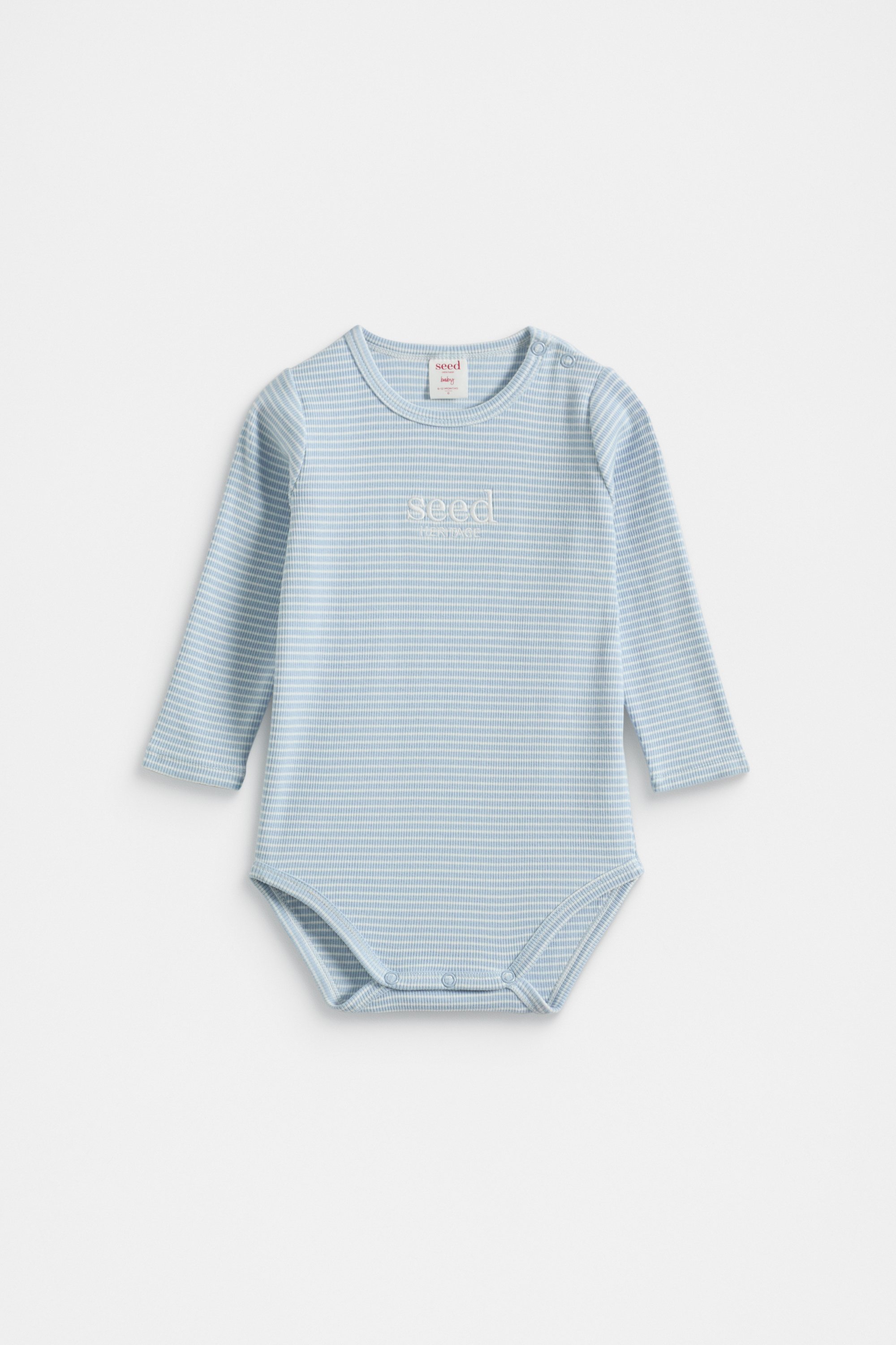 Made from an ultra-soft cotton blend with the perfect amount of stretch and a ribbed texture, this long-sleeved bodysuit is a must-have for any newborn. The round-neck bodysuit features an embroidered Seed Heritage logo, as well as snap fastenings at the neckline and a gusset for quick and easy changes.