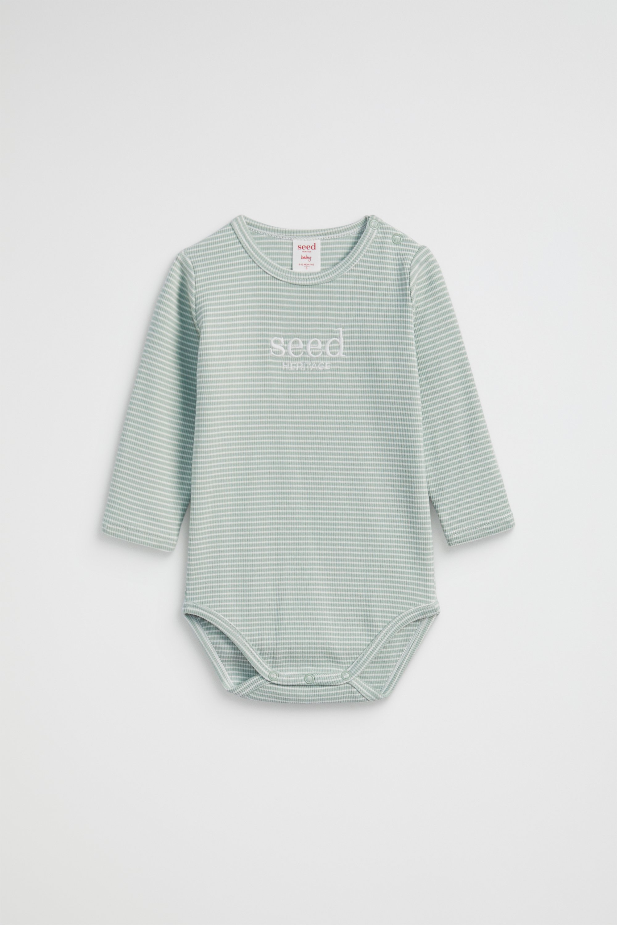 Made from an ultra-soft cotton blend with the perfect amount of stretch and a ribbed texture, this long-sleeved bodysuit is a must-have for any newborn. The round-neck bodysuit features an embroidered Seed Heritage logo, as well as snap fastenings at the neckline and a gusset for quick and easy changes.