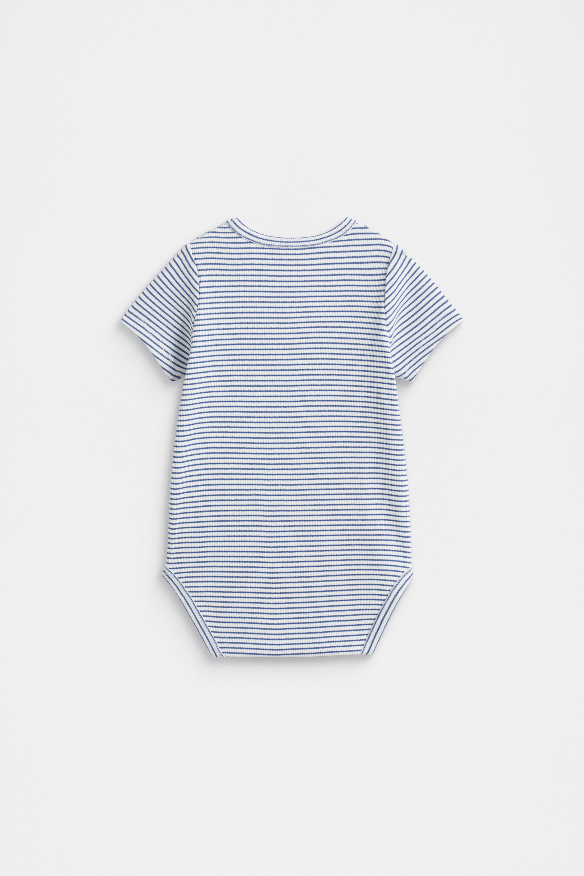 Made from an ultra-soft cotton blend with a rib texture and the perfect amount of stretch, this bodysuit is a must-have for any newborn. It's a short-sleeved style with a round neck, an all-over stripe pattern, and an embroidered Seed Heritage logo. It fastens with snaps at the neckline and gusset for quick and easy changes.