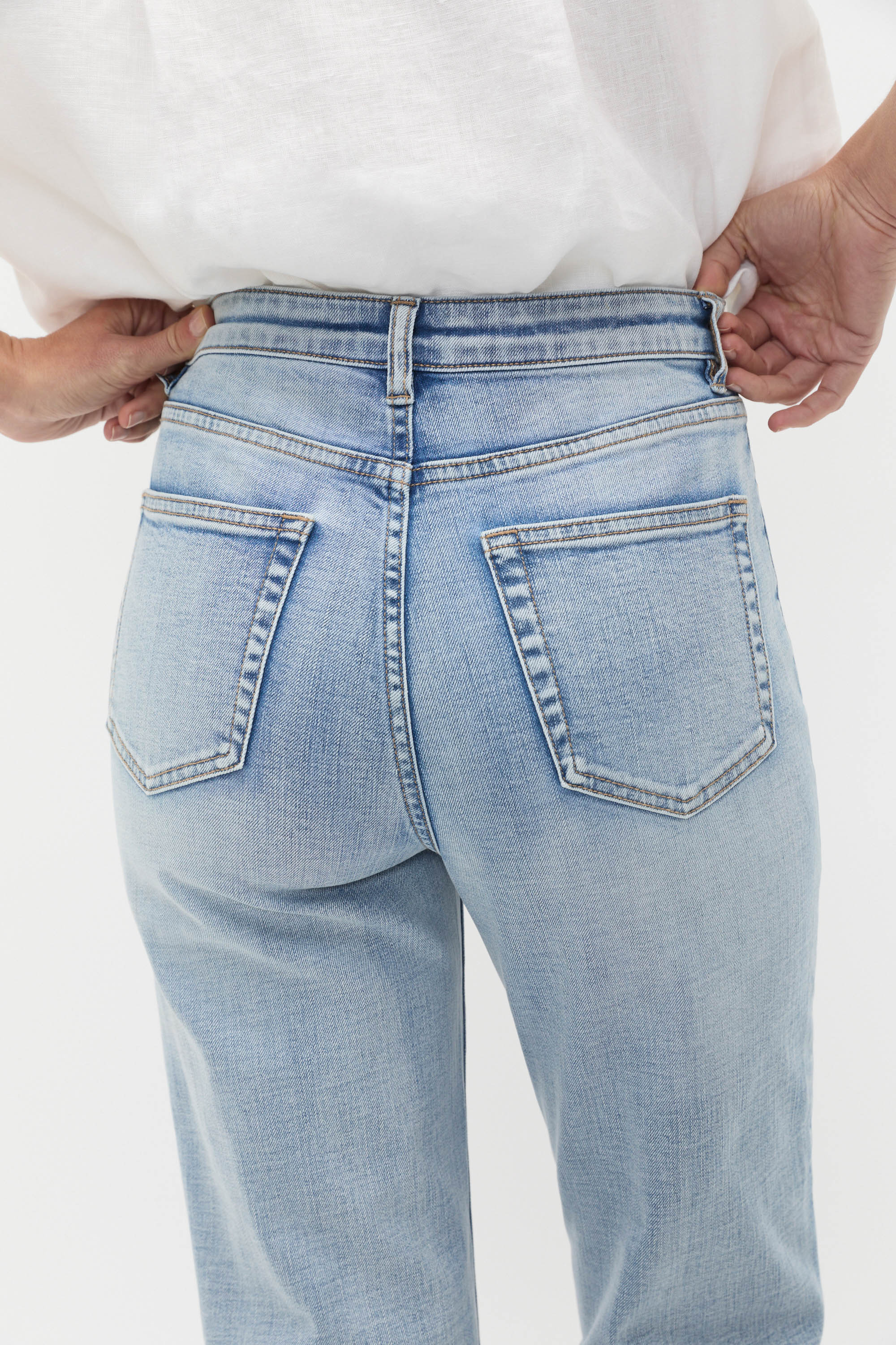These jeans are an effortless option for your everyday styling, ready to slot right into your wardrobe. Crafted in premium cotton, they feature a fixed waistband with a zip front and front pockets. With a slight stretch, these jeans have a straight leg shape. By choosing our cotton products you're supporting our investment in Better Cotton's mission. This product was sourced via a system of mass balance and therefore may not contain Better Cotton.