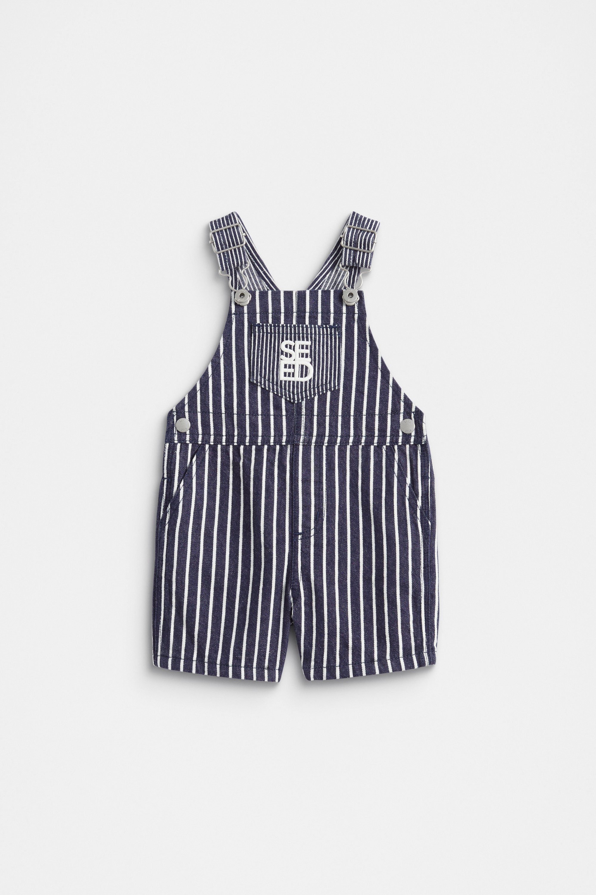 The sweetest stripey layer, these overalls are set to be their new favourite. They feature adjustable straps with bib fastenings, a straight neckline, an embroidered Seed logo, snaps at the waistband, a front patch pocket, and angled side pockets. Crafted from classic non-stretch denim.