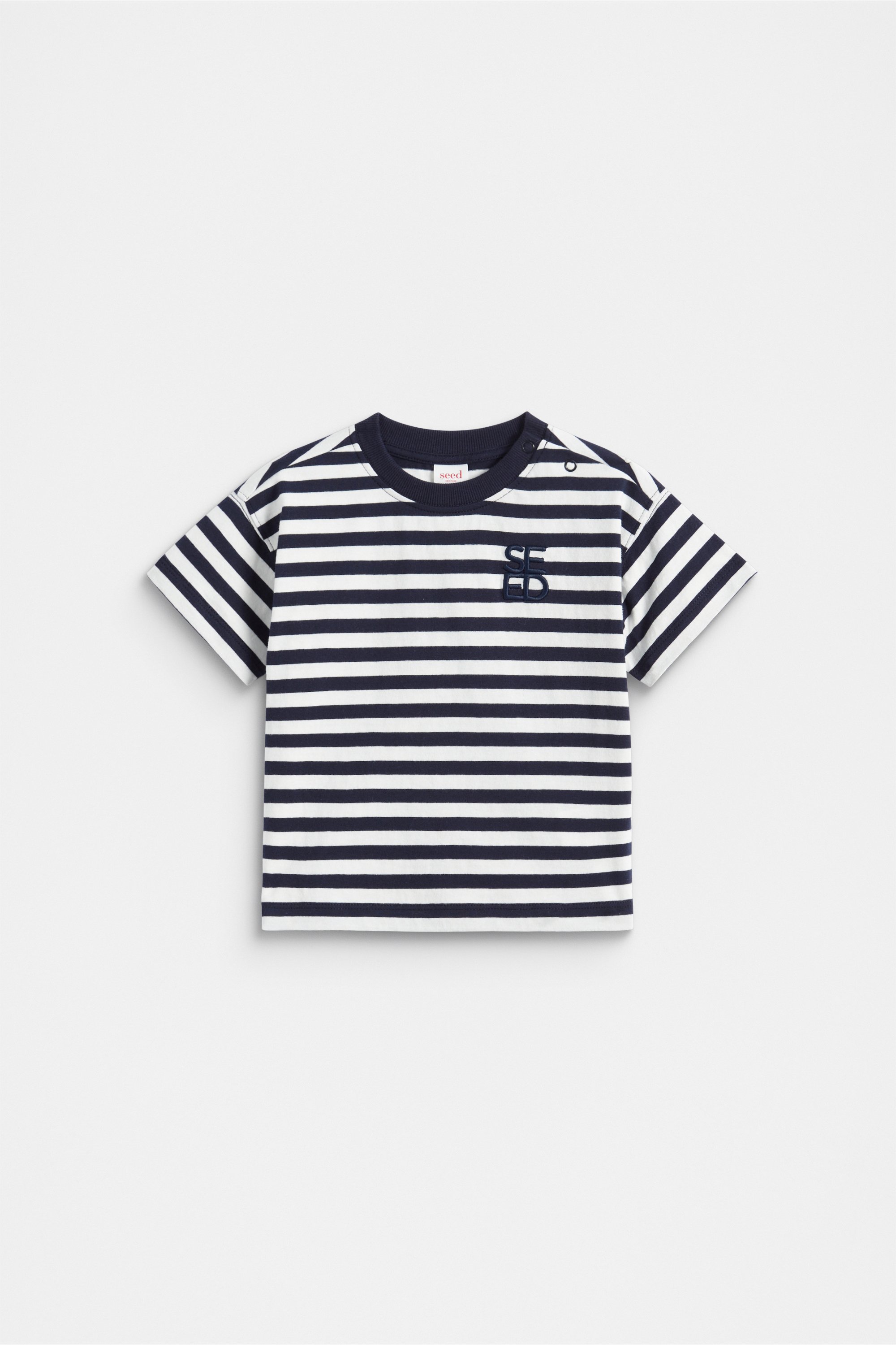 Add some classic stripes to your little one's outfit with this tee. In a relaxed fit, it features a round neck, snaps at the shoulder, short sleeves, and an embroidered Seed logo. Crafted from comfortable cotton.
