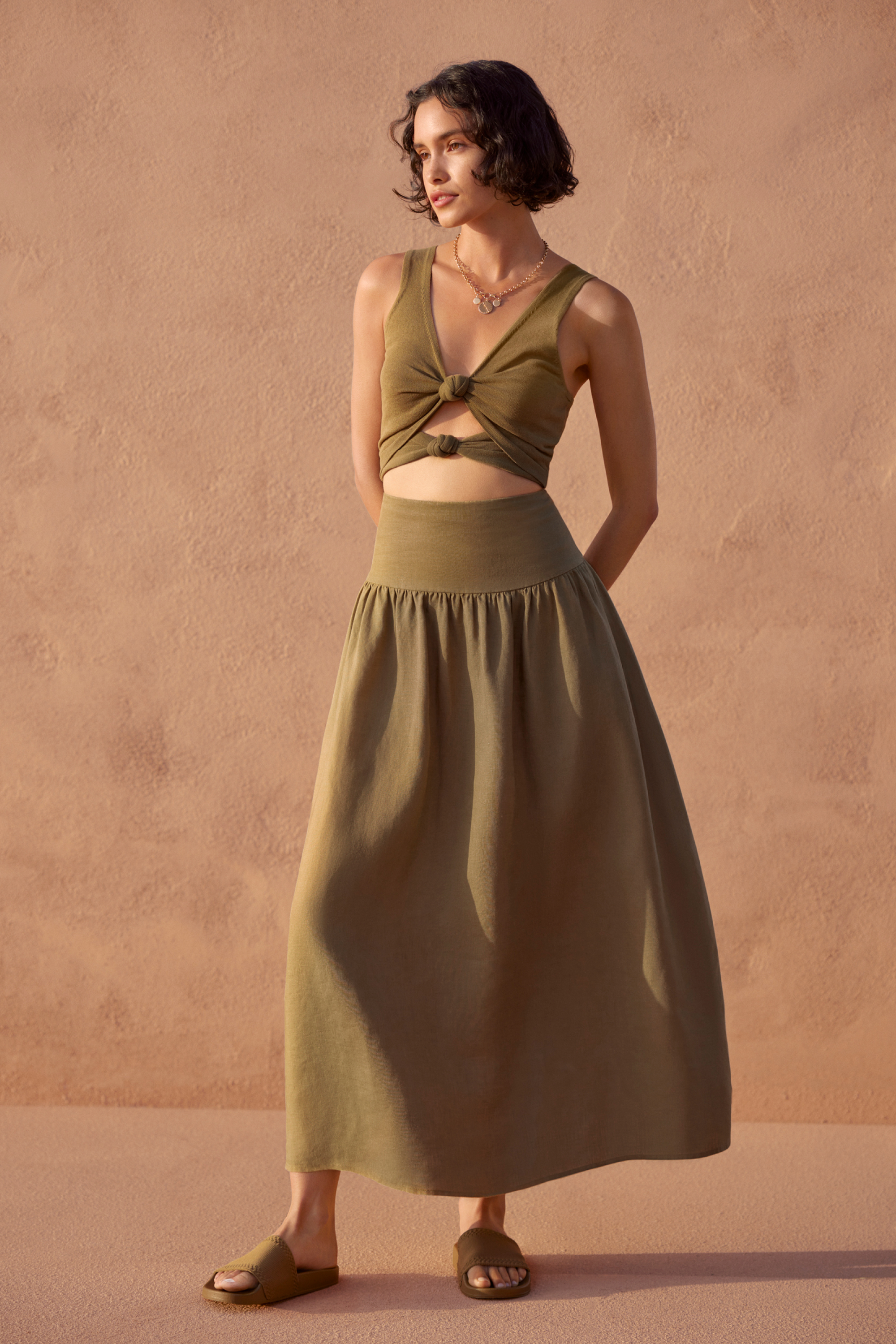 Fashioned from cotton jersey, this top has a knotted design and cut-out details. It is cropped in length, with wide straps, and is ideal for casual outfits through the warmer months.