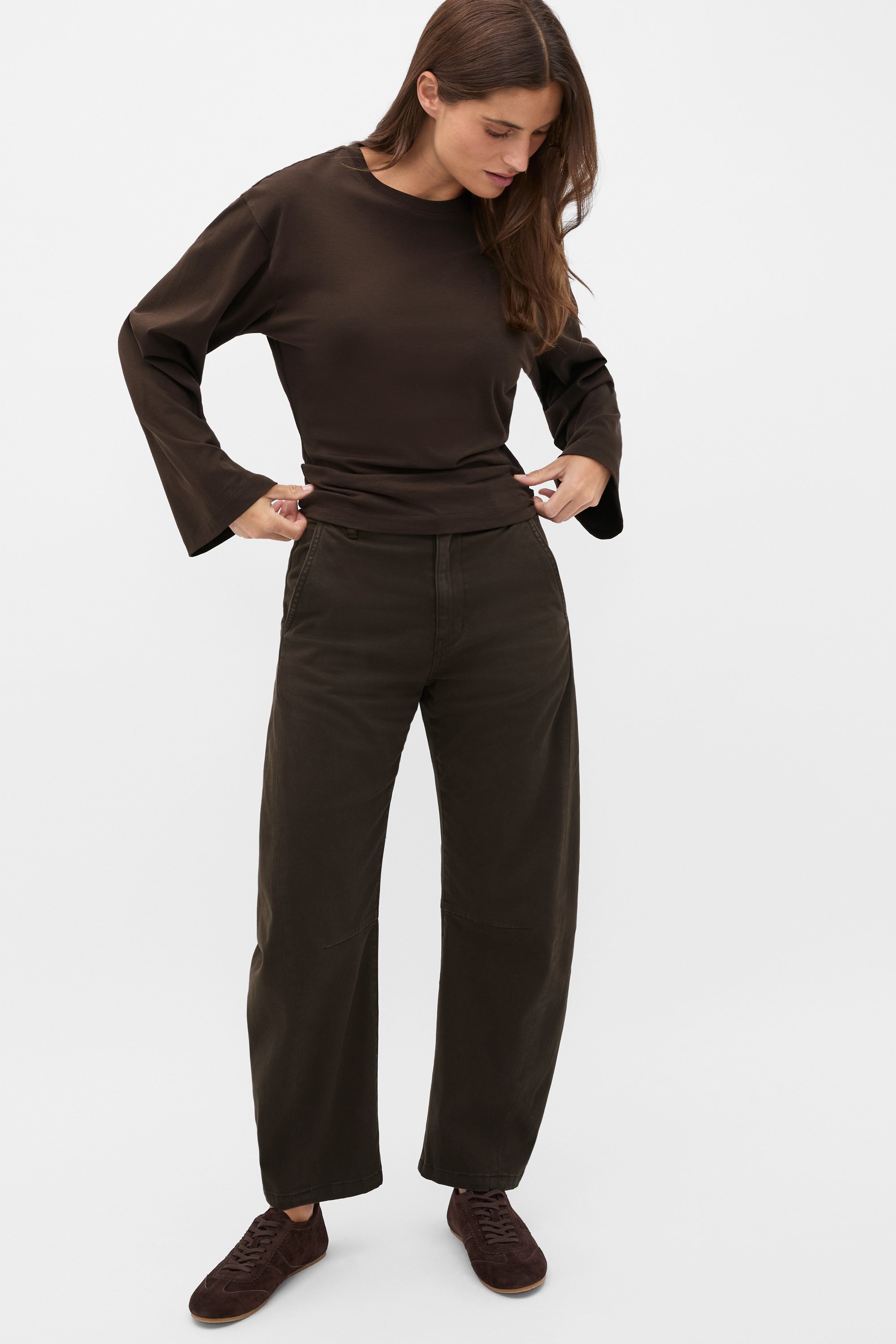 Cotton Long Sleeve Waisted Top  Coffee Bean  hi-res Cotton Long Sleeve Waisted Top  Coffee Bean  hi-res Cotton Long Sleeve Waisted Top  Coffee Bean  hi-res Cotton Long Sleeve Waisted Top  Coffee Bean  hi-res