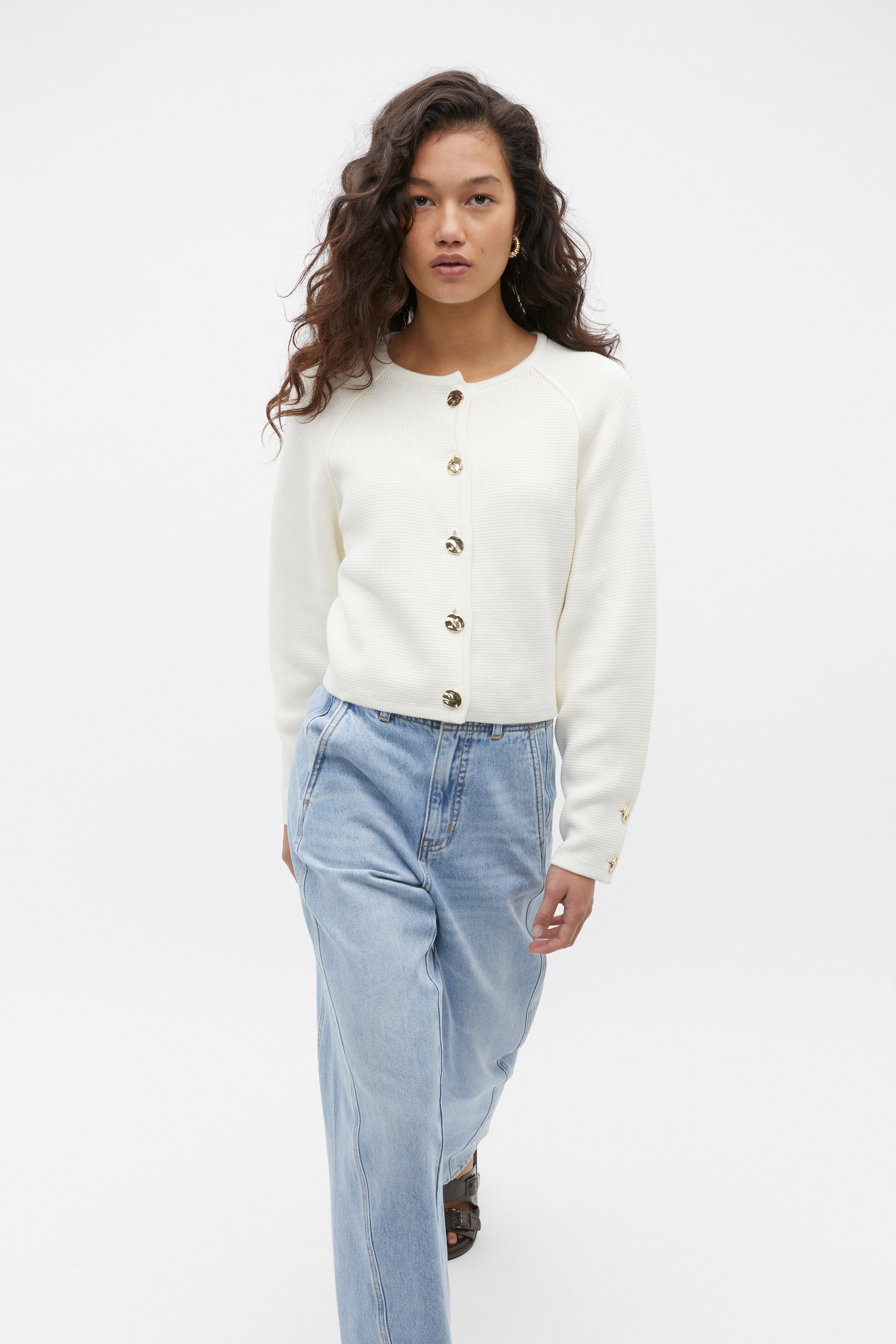 An ideal addition to your casual wardrobe, this cotton cardigan features a round neck, long raglan sleeves, and a button front. It has a relaxed fit, perfect as an easy layer.