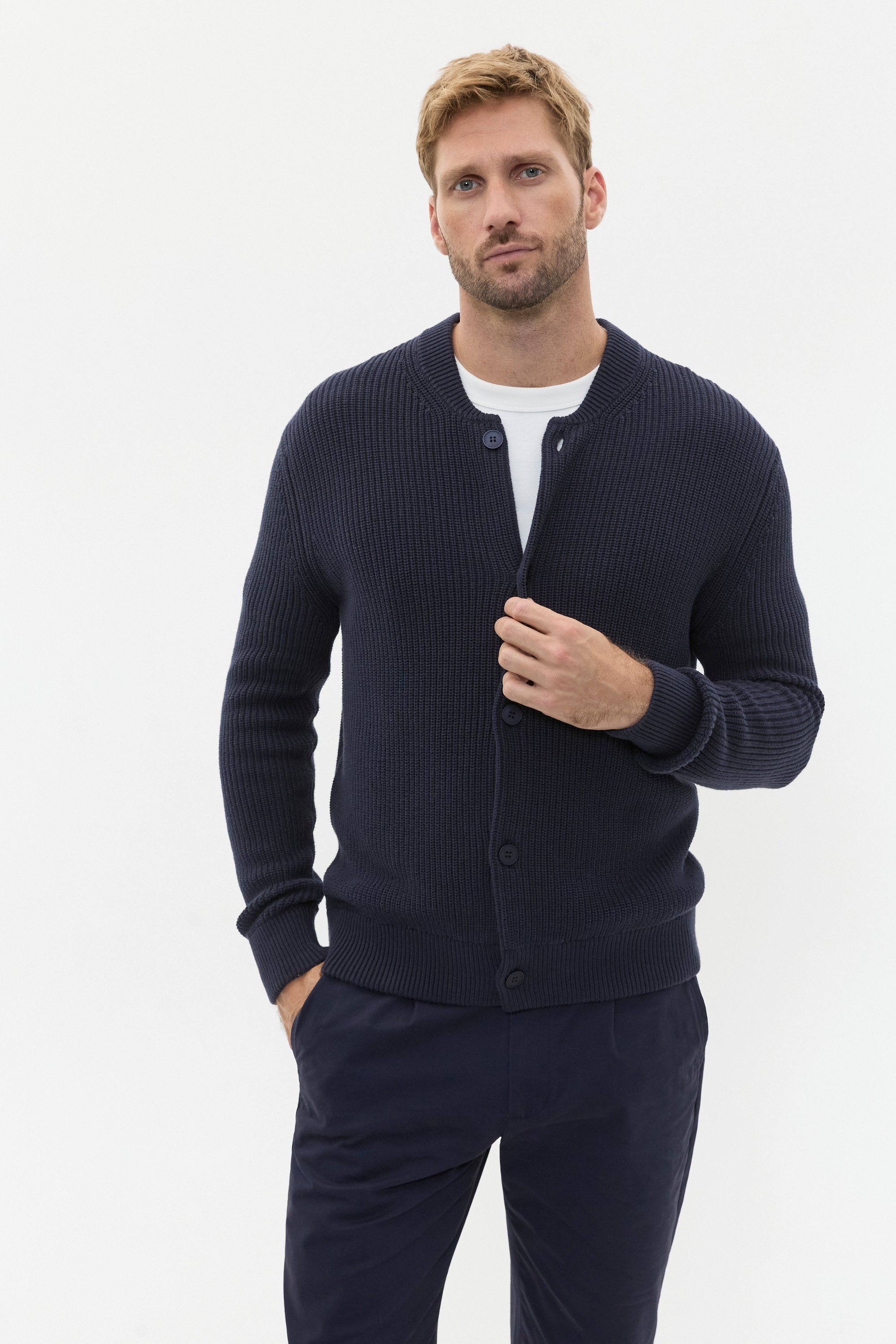 Effortlessly on-trend with a textured finish, this cardigan offers warmth and ease to his wardrobe refresh. Crafted in premium cotton, it features a round neck with a ribbed detail, long sleeves and a button-through front. It's a medium weight knit, perfect for staying warm in the changing seasons.